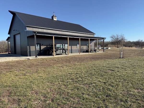 A large 40x60 shop with 10-foot lean-tos on both sides is fully concreted and well-suited for equipment, hobbies, or additional storage. Two RV hookups--one at the home and one at the shop--offer both 30- and 50-amp service, adding convenience for guests or travel use. Barbed wire fencing is in place across the property, supporting both agricultural and recreational needs. Altogether, the home, shop, and infrastructure create a highly functional and thoughtfully built setup ideal for comfortable country living.