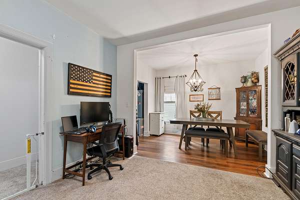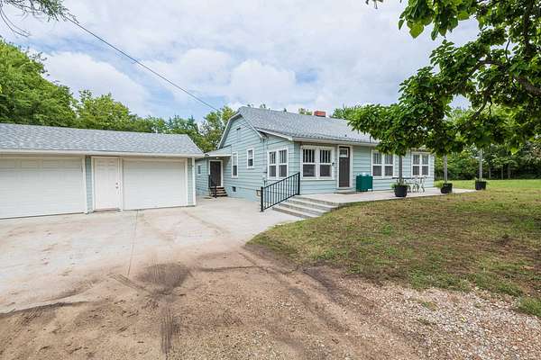 Welcome home! Nestled on nearly 3 acres of peaceful land in Derby, KS, this beautifully updated 4-bedroom, 2-bath residence offers the perfect blend of timeless charm and modern comfort. Step inside to an inviting living room filled with soft natural light, cozy carpet, and a classic ship slap that sets a warm, welcoming tone. The layout flows seamlessly into a stylish dining area and a stunning kitchen featuring quartz countertops, custom cabinetry, open shelving, and a rich blue tile backsplash. A sunny breakfast nook with ample storage and bench seating overlooks the yard, making it the ideal spot to start your day. Each bedroom is spacious and serene, offering plenty of room for rest, work, or play, while both bathrooms showcase thoughtful, modern updates. Outside, you'll find an expansive patio perfect for entertaining, a huge yard surrounded by mature trees, and a 4+ car garage that's a dream for hobbyists, car enthusiasts, or anyone in need of serious storage space. Set in a desirable, quiet location with quick access to town, this one-of-a-kind property delivers space, style, and the rare opportunity to enjoy a more private way of living-all on 2.74 acres of beautiful Kansas countryside. Wichita taxes, Derby schools!!!!