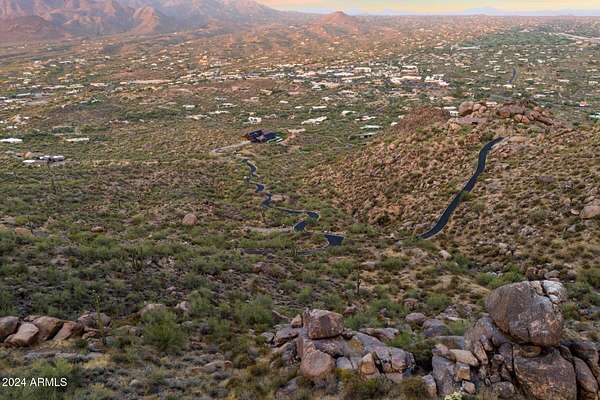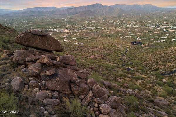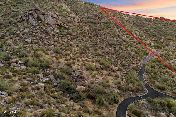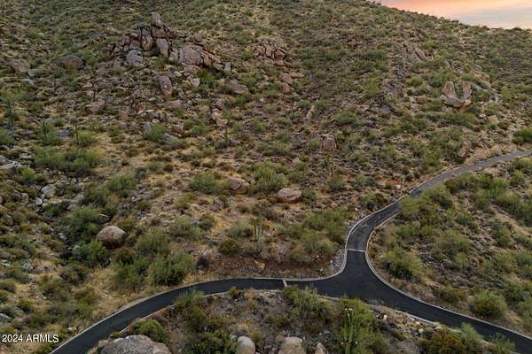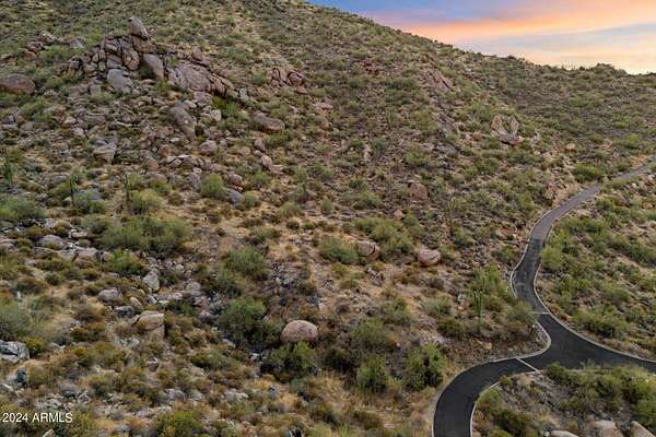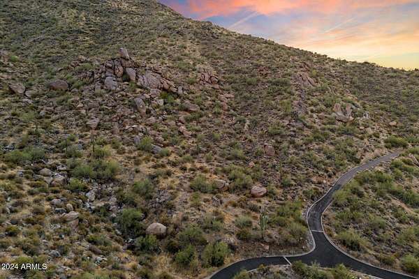 This exceptional 5.10-acre home site on the north slope of Black Mountain offers a serene and elevated setting in the prestigious, gated Hawksnest Subdivision. The gently sloping building site, adjacent to preserve land, provides easy access and incorporates a signature boulder into the design, surrounded by breathtaking views of the Continental Mountains, Elephant Butte, Skull Mesa, and Apache Peak. With paved roads and utilities on-site, this property offers high-quality, low-density living just minutes from golf, shopping, dining, and the charming towns of Carefree and Cave Creek, making it the perfect retreat.