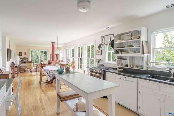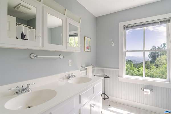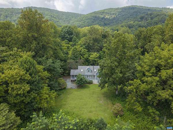 Open House Saturday and Sunday March 7 & 8 1:00-3:00...Beautiful mountain views to the east! Architecturally designed and custom-built to take advantage of these views...This light-filled 3/4 bedroom cottage is set on a private 5 acre lot in Emerald Ridge, near Crozet..The bright great-room extends the length of the house. and features a kitchen with a walk-in pantry and opens onto the screened porch...The covered front porch is extended living space as well.. First floor primary suite, features an outdoor shower and a walk-in closet...Full, unfinished, walkout terrace level, with roughed-in bath, offers possibilities for additional living space.