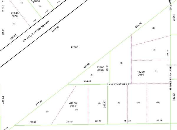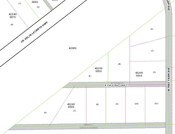 From the intersection of CR 491 (Lecanto Highway) and N Treefarm Avenue: Turn southeast onto N Treefarm Avenue, continue .1 miles and the approximate Northeast corner of the property is where Treefarm Avenue turns due South.