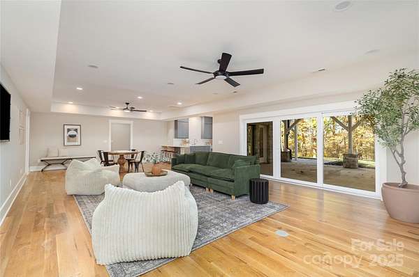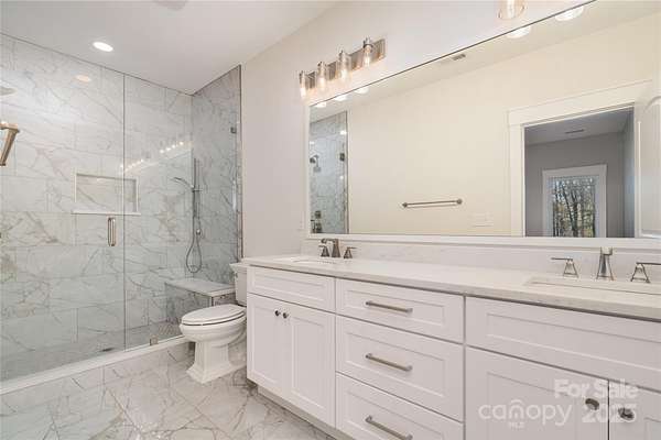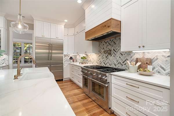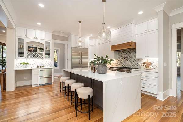 Wow, what a beautiful home in a serene setting on over 2.3acres backing up to over 35 peaceful wooded acres, inside 485 with a truly custom built home that's just minutes from Southpark. This true Southern gem of a home was meticulously designed and executed by custom home builders. The sprawling residence features the primary and two other bedrooms on the main floor, along with the expansive kitchen, scullery, dining areas, office/den, mud room/entry area and a real laundry room. The kitchen is the heart of the home with a full suite of Thermador appls, waterfall Quartz counters, custom range hood, and a large scullery room with additional oven, micro, DW, and storage plus the kitchen has amazing views of the wooded lot behind, the gracious covered back patio that evokes Colorado/Montana with the vaulted wood ceiling and beams that are carried into the main living room stone fireplace and hearths. The primary suite also includes vaulted ceilings, a custom closet with island is already built-out and the ensuite bath is just dreamy with marble heated floors and steam shower equipped with an aroma therapy option! The office includes extensive custom moldings and windows overlooking the paver accents of the circular driveway and front yard. Too many other options to list but the expansive basement must be mentioned! A nice bar greets you as you enter the fully walk-out basement with covered patio, large play/game rooms, theatre room with insulated walls plus 2 other beds and baths. This is such an amazing entertaining space (also extra storage rooms!). The back yard is really the "piece de resistance", plenty of room to enjoy a pool & large flat grassy yard with the ultimate in quiet, peacefulness, and serenity. This home is truly a custom masterpiece and not something easily found in S Charlotte in this location with these great schools and just minutes to some of the best shopping & dining Charlotte has to offer. Schedule your private tour now!