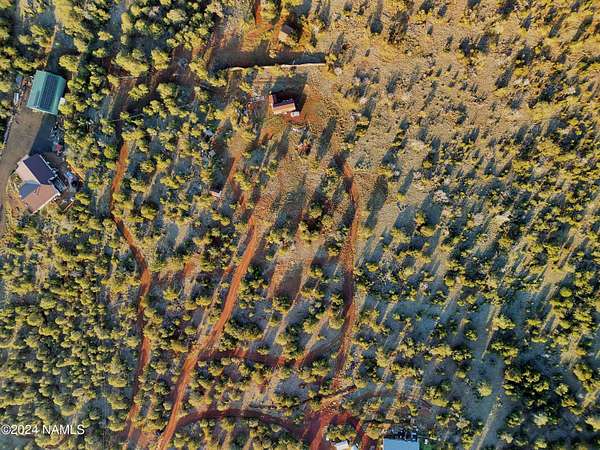 From Williams: Take HWY 64 to Broncos TRL and make a right. Turn right on High County LN (frontage rd.) Turn left on dirt road in .22 miles and head east toward the property. It will be at the top of hill on the right in .2 miles.