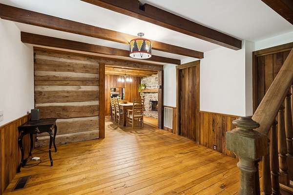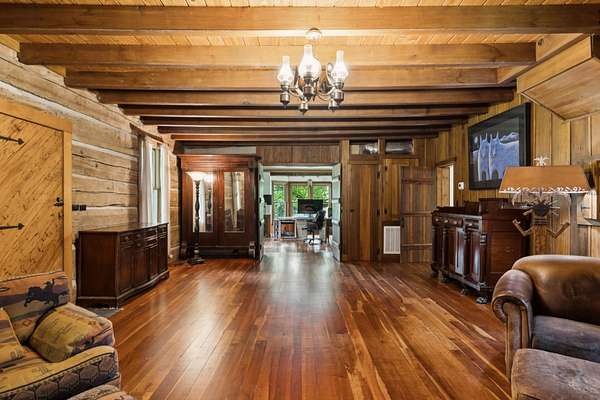 This 11-acre wooded estate features a blend of cleared, grassy land and a magical grove of towering walnut trees. There are four buildings in total, including two charming log cabins and a spacious creativity studio perfect for artists and musicians. Another building is a blank canvas, ready to be transformed to suit your needs. This is a unique opportunity to own a peaceful retreat.