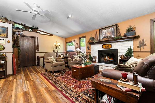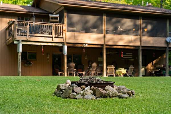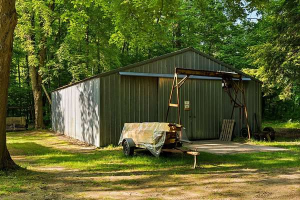 A true must-see! This private retreat is nestled amongst 10 acres of lush woods and open fields, bordered on 2 sides by 219 acres of Consumers waterfront property. In a living setting well secluded from the road, you're sure to find your mornings on the covered 3 seasons screened-in porch from your bedroom's slider delightful, enjoying the sunrise through the trees, and the unbroken sounds of the abundant wildlife. This well-maintained and meticulously cared for 3 bed 3 bath home offers its next owner all of the ''extras'' they are in search of. This 3200+ square foot home was built to last, and has been improved upon since its completion with handmade wood features throughout. The two fireplaces will keep you warm, including the downstairs wood-burning fireplace that provides a comfortable setting any time of the year, all while you enjoy the wet bar and walkout patio spanning over 60'. The downstairs also features a full bath and mudroom with nearby outdoor access, so cleanup after a day of biking nearby trails, fishing or boating the river, or hunting your ground or nearby state land is a breeze. The newly added hardscapes outside expand the scenery along with the fresh stain on the exterior providing added protection for years to come. A 24'x36' heated garage provides plenty of space for your toys, or moving about the cars with ease. If that isn't enough, there's the 30' x 42' pole barn that comes complete with a split space that's heated and cooled, while being set up to handle all the shop equipment you need to house your hobbies. Thoughtfully constructed and covered wood storage areas are placed within walking distance to the basement and the wood boiler keeping things dry year round. The newly added True Stream Fiber Optic service provides a stable internet for streaming and entertainment purposes. The home was repainted/stained in 2024, all new blown in insulation in 2025, along with new hardscapes along the garage, and a brand new roof complete with transferrable warranties. When you're not enjoying the wildlife or outdoor features you can find yourself on the water just minutes from Hardy Pond, catching Bluegill, Rock Bass, Walleye, Trout, and numerous other species in this 4000+ acre water system, boasting depths of up to 110ft. This waterway draws many enthusiasts from around the state with its boating experiences all season long as it spans over 50 miles of undeveloped shoreline. In the heart of the nearby acreage and within your reach, you'll find the illustrious Dragon Trail, with an expected 40-plus miles of compacted trail awaiting your adventurous side. All of this, only 40 miles north of Grand Rapids, and a short drive from HWY 131. This rare opportunity is sure to please, call to schedule your showing today! **Certain personal property can be included with the right offer.