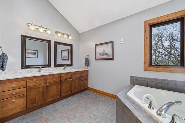 - 2 or More Fireplaces, Gas Fireplace, Hot Tub, Kitchen Island, Natural Fireplace, Pantry, Vaulted Ceiling(s), Walk-In Closet(s), Wood Floors