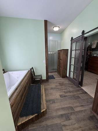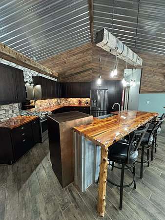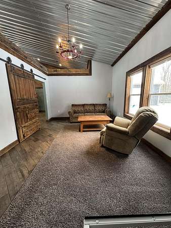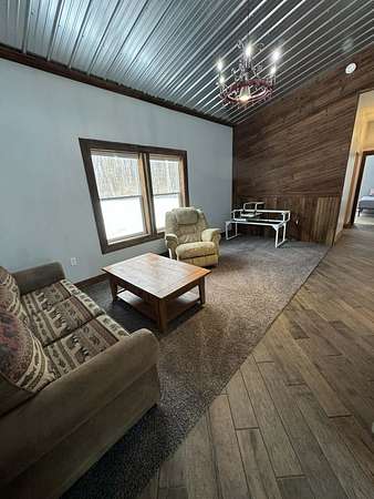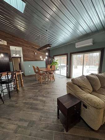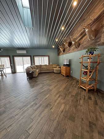 Beautiful Barndominium on 7.58 Acres. Tucked among mature trees at the back of 7.58 peaceful acres, this barndominium offers space, privacy and versatility. The home features 4 bedrooms and 3 full baths, Open floor plan, family room, plus two additional finished rooms ideal for extra bedrooms, a craft room, office, or flex space to suit your needs. Enjoy a functional floor plan with vaulted ceilings, custom countertops, and designer lighting throughout. Radiant floor heat and an outdoor wood furnace provide efficient warmth and can also supply the on-demand water heater, while two mini-split systems offer air conditioning and additional heating options. Exterior highlights include a metal roof and siding, a 2-car attached garage, detached 1-car garage, He/She shed, and a rear deck perfect for wildlife viewing and quiet evenings. This unique property blends comfort, practicality, and country living in one exceptional setting.
