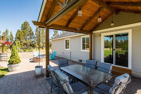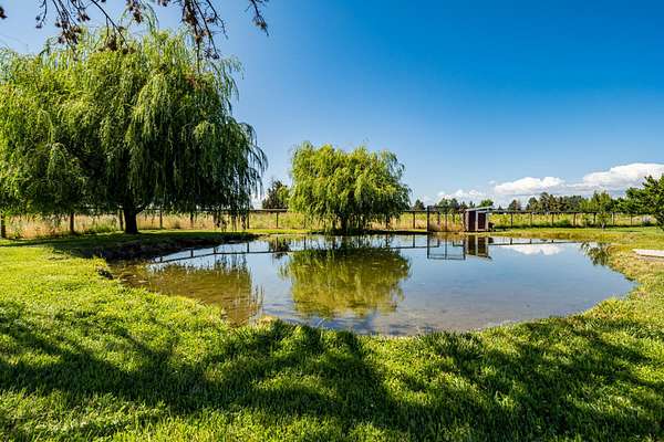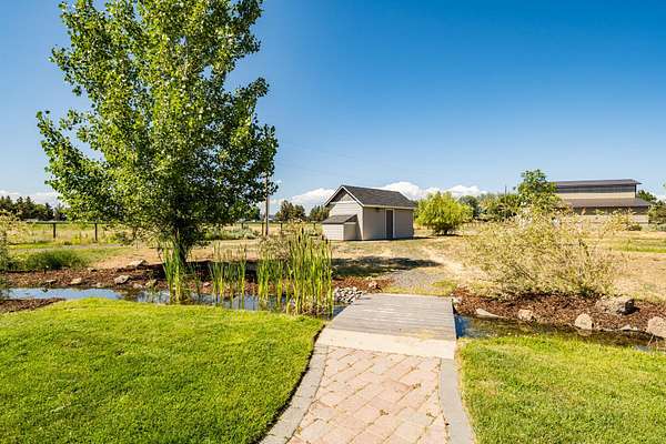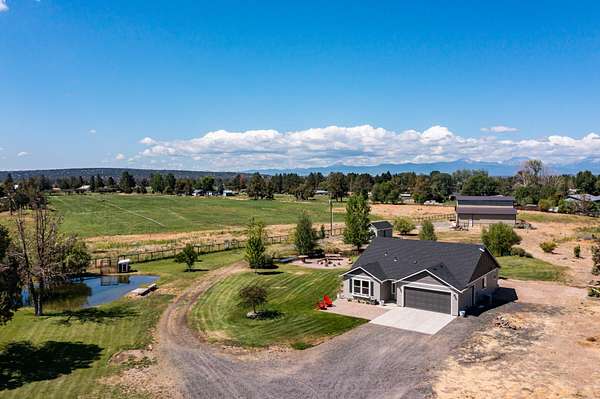 Desirable, private, fully fenced 4.92 acre mini-farm with a beautiful single level home and 40' x 48' shop. Home is recently upgraded throughout with new laminate flooring, fresh interior/exterior paint, new carpet in master, updated vinyl in bathrooms, and more. Property features large pond, Wi-Fi controlled irrigation pump, in-ground sprinklers on wi-fi controlled system, buried propane tank, loafing-shed, and automated watering raised garden bed. This turn-key property includes a hot tub with deck lighting, automated entry gate, renovated patio, and beautiful landscaping. Shop has concrete floor with 14' RV door and 10' vehicle door. Perfect for country living, optimized for modern rural lifestyle, ideally located between Bend and Redmond. Uniquely situated, this property provides privacy not found on much larger acreage.