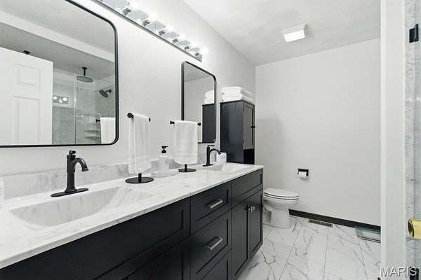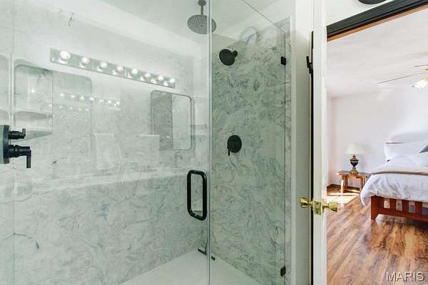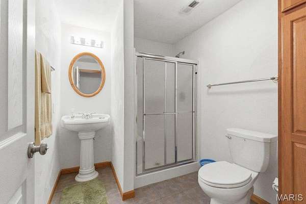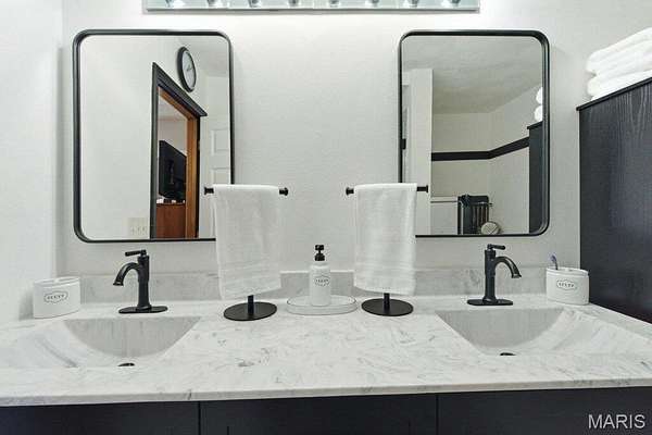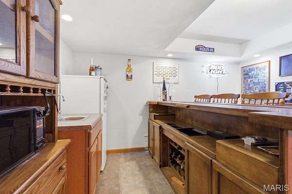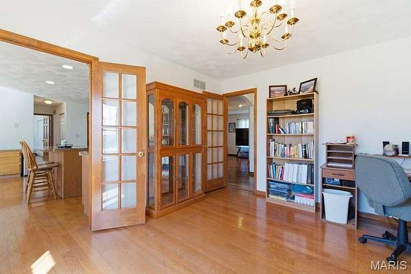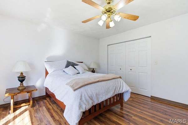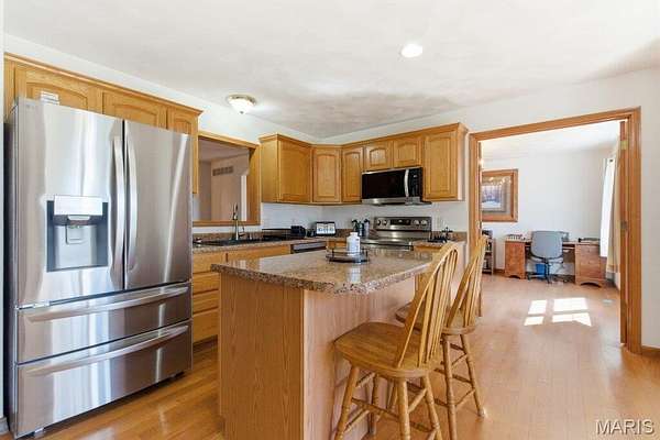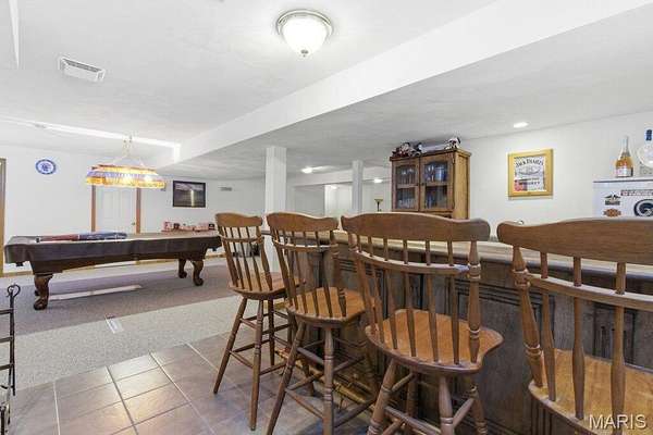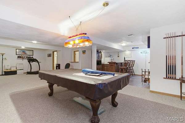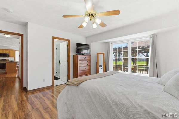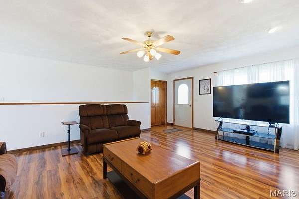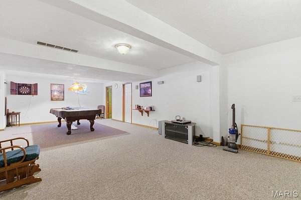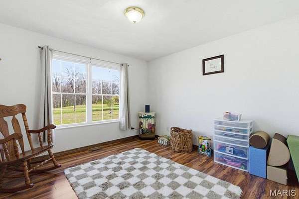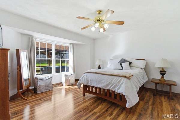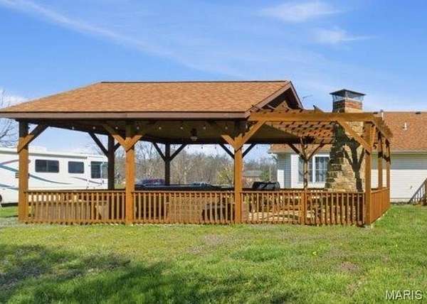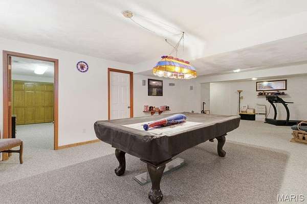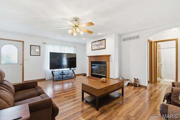 This beautifully maintained home on 2.55 acres is designed for effortless entertaining and everyday comfort. Nestled in the rolling hills just seven miles outside Waterloo, it offers one of the prettiest settings around, with endless picturesque views. The custom pavilion—complete with a stone fireplace and hot tub—overlooks a private field, creating the perfect backdrop for unforgettable evenings. With approximately 2,800 finished square feet and located in Waterloo School District, the home features a main-floor master suite and laundry room for convenient living. Step into a spacious family room with a wood-burning blower fireplace and newer industrial Stage 4 laminate flooring and solid wood doors throughout, framed by a large picture window ideal for seasonal décor. An arched doorway and staircase to lower level add charm and convenience, while the open kitchen boasts stainless appliances, a farm sink, solid wood cabinetry with slide-outs, granite-look counters, and a beverage station with pantry (2025 remodel). Sliding doors from the breakfast area open to the rebuilt 2025 deck overlooking the impressive pavilion with hot tub and stone fireplace. A formal dining room with oak flooring and French doors sits just off the kitchen. The hall bath features new LVT flooring, a Hardy Board vanity, and a tub/shower combo. The main-floor bedrooms include one with a double closet and another—the primary—with laminate flooring, a bay window, and a spacious walk-in closet. The newly remodeled master bath showcases a double vanity, waterproof Hardy Board LVT flooring, and a walk-in shower with dual rain heads for two. A ceramic-tiled laundry room and attached two-car garage with attic storage complete the main level. The lower level is a weekend retreat, featuring oak stairs, ceramic tile, a large family room with a clawfoot pool table, custom bar with dry sink and bottle storage, and a wet sink on the bar back. Two nonconforming bedrooms (no windows) offer flexibility for guests, a gym, office, or craft space, and the lower-level bath includes a ceramic tile shower and pedestal sink. Major updates include a 2024 gas furnace and AC, 183-foot deep well with sand filtration (no water or sewer bill), 2025 water softener, new hot water heater, 2025 kitchen remodel and appliances, 2025 deck, 2025 master bath remodel, and new flooring throughout. For a full list of upgrades, see the MLS listing information sheet.