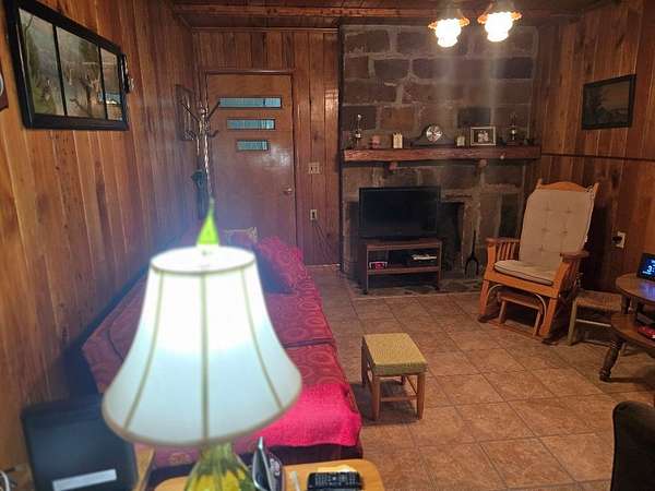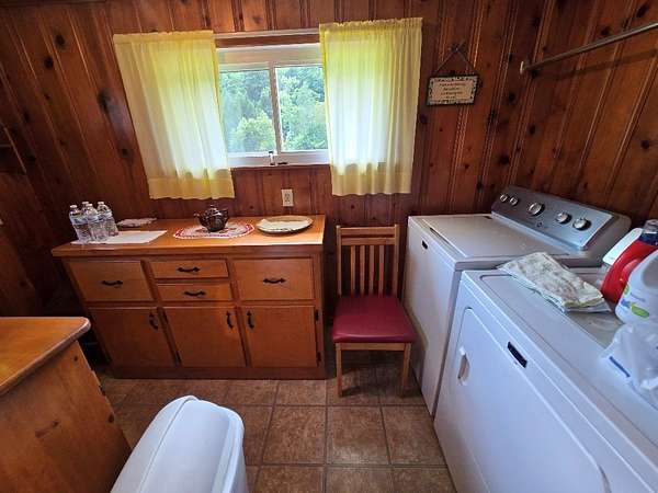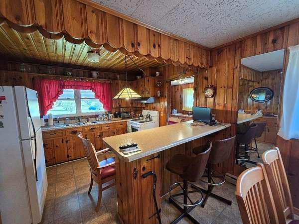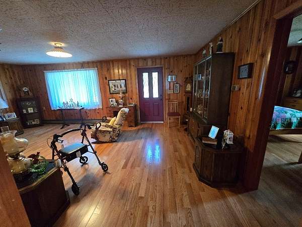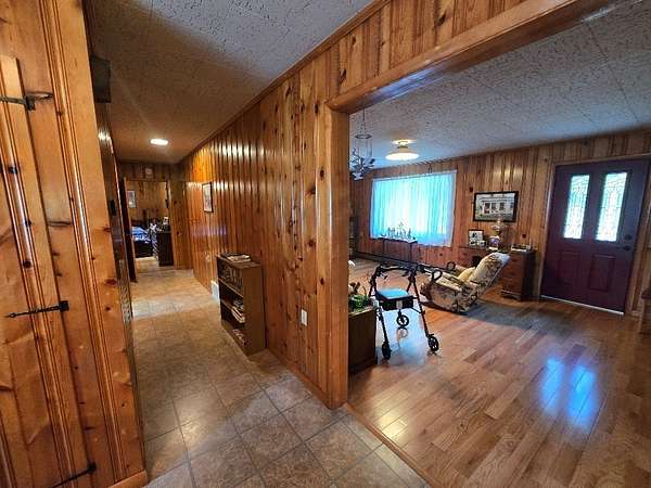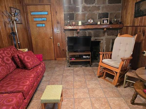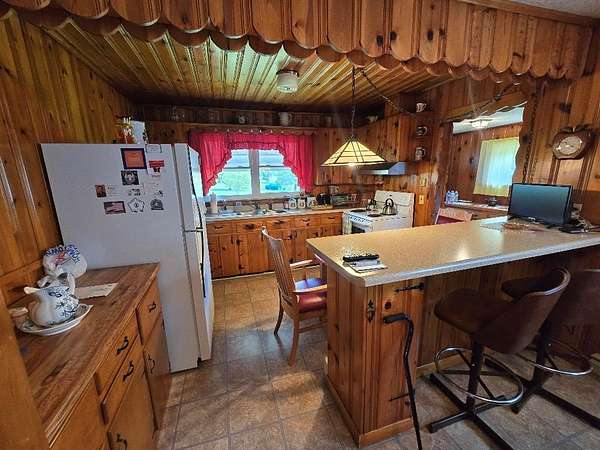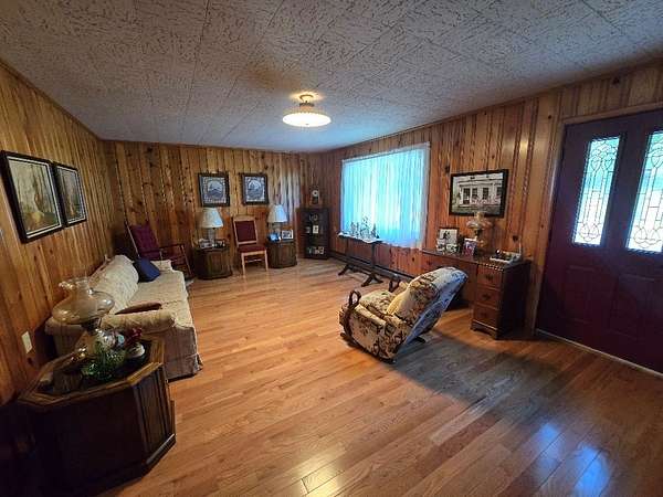 Discover this beautiful brick ranch home nestled on 5.2 acres of gorgeous, level land, offering plenty of space and tranquility. The property features epoxy-coated sidewalks that combine durability with a sleek look, leading to the inviting entryway. Inside, you'll find stunning wood walls throughout, creating a warm and welcoming atmosphere. The spacious kitchen includes all appliances, making it move-in ready, along with a washer and dryer for added convenience. The home boasts a durable metal roof, providing long-lasting protection from the elements. An attached one-car garage offers secure parking and extra storage options. Cozy up around the stone fireplace in the living area, perfect for relaxing on chilly evenings. The expansive land provides ample opportunity for outdoor activities, gardening, or possibly even future expansions. Whether you're seeking a peaceful retreat or a family estate, this property combines quality construction with timeless charm and practicality. Don't miss your chance to own this exceptional ranch home with plenty of space, comfort, and style. Schedule your showing today and experience the beauty and potential this property has to offer!