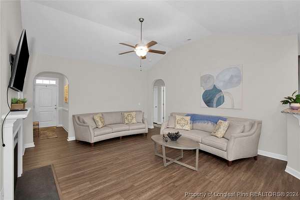 This stunning waterfront retreat in North Fayetteville combines peaceful seclusion with easy access to everything you need. Set on over 39 acres, including a serene pond, this 2020-built home offers more than 2,800 square feet of beautifully designed living space. Inside, you'll find 5 spacious bedrooms plus a bonus room upstairs. The fifth bedroom, as large as a double garage space, offers remarkable flexibility....studio, office, or even a media room. Entertain with ease on the charming gazebo overlooking the water, spend afternoons fishing from your dock, and gather around the fire pit for evenings under the stars. Throughout the home, LVP flooring adds warmth, and the screened porch offers a perfect spot to unwind with scenic views. This property is a rare find, where tranquility, space, and the comforts of a modern build come together in one breathtaking setting There is an easement for area and well on property are shared with 6635 Ramsey. Welcome Home!