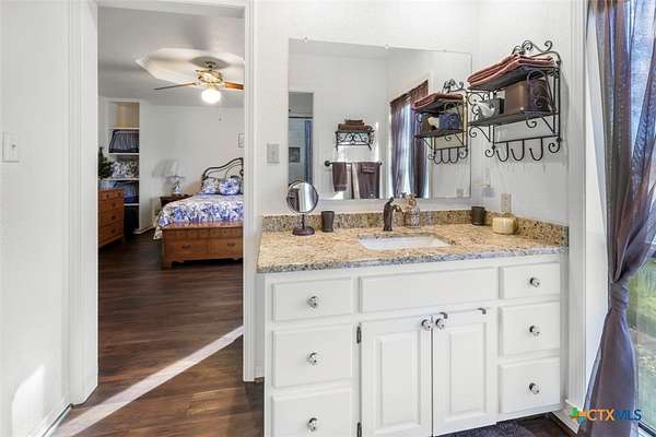 - All Bedrooms Down, Ceiling Fans, Double Vanity, Eat In Kitchen, Entrance Foyer, Granite Counters, Kitchen Dining Combo, Kitchen Island, Multiple Living Areas, Pantry, Pull Down Attic Stairs