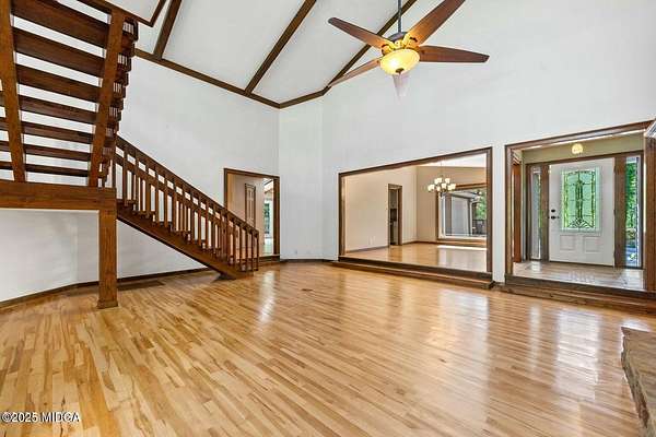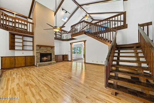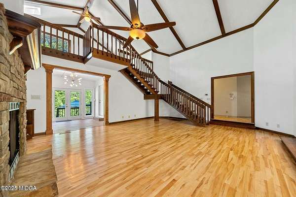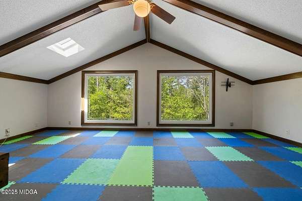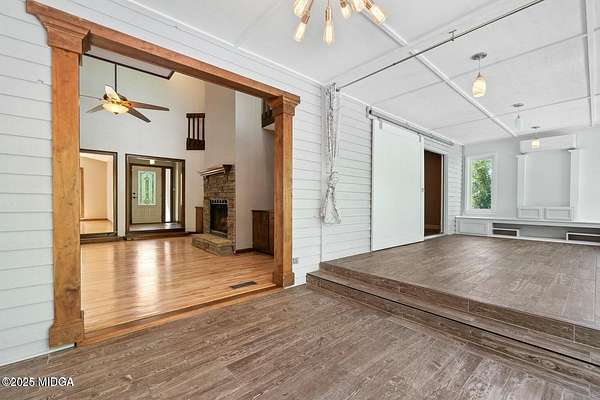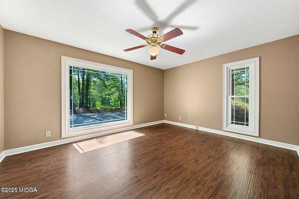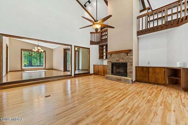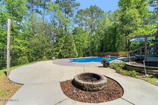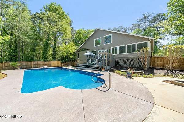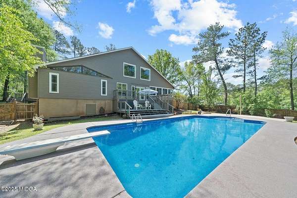 Back on the market at no fault to the seller. Welcome to this stunning 3,000 SQFT home nestled in the gated River North community, just minutes from the front gate. With 3 bedrooms, 2 full baths, and 2 half baths, this home offers the perfect blend of Southern charm and thoughtful design. The split floor plan provides privacy and space, ensuring everyone has their own retreat. Step through the front door into a welcoming foyer that opens into a spacious step-down living room with soaring ceilings and hardwood floors, complete with a stack stone finished fireplace. Just off the living room is a bright sunroom-ideal for enjoying your morning coffee or a peaceful evening unwind. The heart of the home is the kitchen, featuring tiled floors, a built-in stove, island seating, and a cozy eat-in area. Off the kitchen, you'll find both the laundry room and a large flex space previously used as an art room-perfect for creative projects, a home office, or extra living space. This property offers plenty of storage space, and a formal dining room sits just off the kitchen, creating a smooth flow for entertaining. The master suite offers a quiet retreat with bamboo flooring, its own fireplace, a soaking tub, separate shower, double vanities, and a walk-through closet with built-in shelving that leads directly back to the kitchen-for those late-night snacks. Upstairs, the loft features gym flooring, built-ins, large windows overlooking the backyard, and a hidden closet behind a mirrored panel-adding a fun and functional surprise. The grand outdoor oasis is truly one of the standout features of this home, all set on a beautiful 2-acre lot. The fenced-in private backyard is perfect for relaxation and entertainment, with an in-ground saltwater pool, diving board, fire pit, beautiful flower beds ready for the next homeowner to plant their own gorgeous blooms, mature pear trees offering shade and seasonal fruit, and posts for hanging summer sails. A 2-tiered porch with storage leads to a convenient half ''pool'' bath, making it easy to entertain by the water. Additionally, the side yard is fully fenced and features its own deck, ideal for grilling or letting your pets roam. For a more rustic retreat, an additional fire pit on the side of the house creates a cozy, wooded feel. With plenty of parking available, including a 2-car garage, this property offers space, comfort, and charm in every direction. River North is a gated community with an active HOA and the added option of joining the neighborhood country club. Members enjoy access to a community pool, tennis courts, a fitness center, and an 18-hole golf course. The country club also serves food, offering a great place to grab a bite and connect with neighbors. All measurements are approximate. Macon address with Jones County taxes!!!