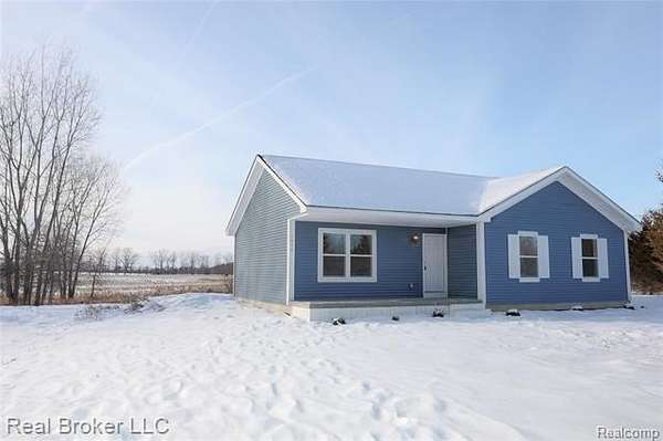 Welcome to this beautiful brand-new ranch home on a quiet 1.7-acre lot in Bancroft! If you have been looking for a fresh start in the country with space to spread out, this home is a wonderful option. Inside you will find a bright open floor plan. The kitchen flows into the main living area, creating an easy space for both entertaining and relaxing. The primary suite is spacious and includes a full bath and a walk-in closet. Two additional bedrooms and another full bathroom provide plenty of flexibility for family, guests, or a home office. The 1.7-acre lot gives you room to garden, play, or simply enjoy the quiet surroundings. With new construction, modern finishes, and a rural setting, this property offers the perfect balance of comfort and privacy at an affordable price. Refrigerator will be included with the sale.