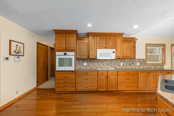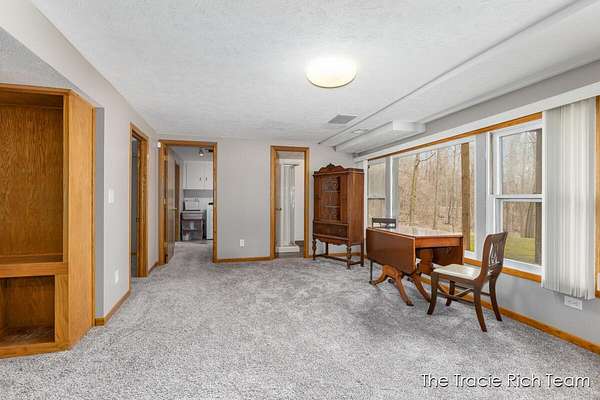 Beautiful walk-out ranch set on 4 scenic acres in Comstock Park! This well-maintained 3-bedroom home offers stunning views and a peaceful setting, backing directly up to Scott Lake Golf Course. The home features a wonderful kitchen with a huge eating area and bamboo flooring with a slider leading out to the porch--perfect for enjoying the views. The main floor offers both a large living room and a spacious family room, providing plenty of room to relax or entertain. The lower level adds even more living space with a full bath, an office or potential bedroom, and tons of storage. Enjoy the privacy and space of country living while still being conveniently located--this is a rare opportunity to own acreage with picturesque surroundings and a meticulously cared-for home!