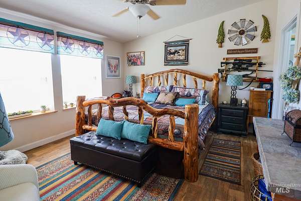 Nestled in the scenic beauty of Harney County, this 80+- acre property boasts breathtaking views of the Steens Mountains and offers many possibilities. At the top of the land sits a well-maintained 3-bedroom, 2-bath home with approximately 1,780+- SF of living space. The home features a nice island kitchen with hickory cabinets, large picture windows that capture the surrounding vistas, a convenient mudroom, and additional storage. A newly installed heat pump ensures efficient climate control throughout the year, and all doorways are extra wide for easy access. Step outside to enjoy the peaceful rural surroundings from the enclosed patio with a hot tub, or unwind by the private, man-made pond that's perfect for swimming. The property includes three charming guest cabins, each fully furnished with A/C units and high-speed internet via Starlink. One cabin features beautiful Juniper wood interior walls, while the other two feature tongue-and-groove wood finishes. Each cabin has its own deck, creating a serene retr