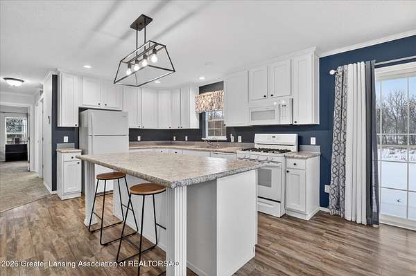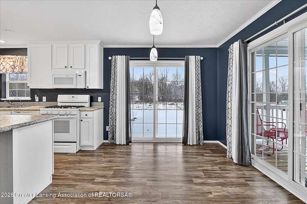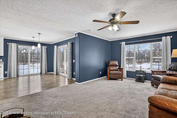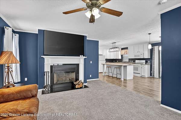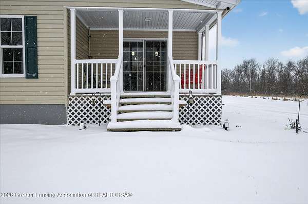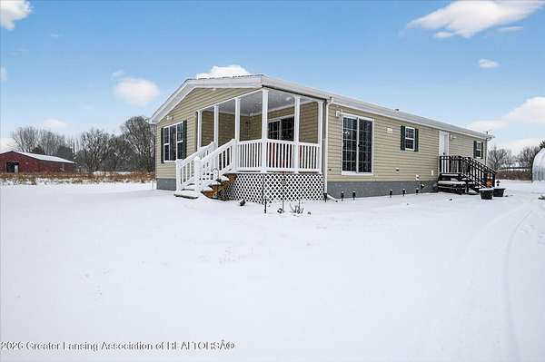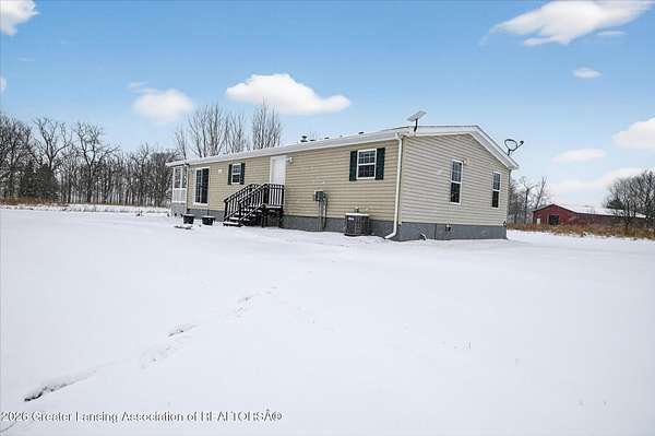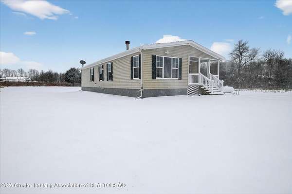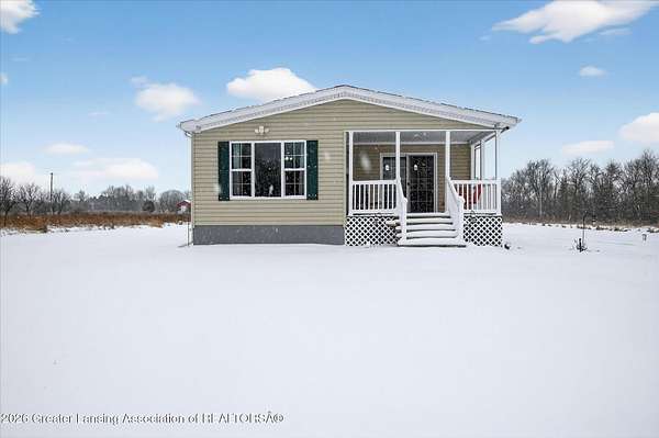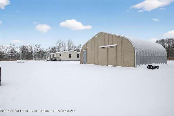 THREE BEDROOM RANCH MOVE IN READY nestled on a picturesque 4.33 acre parcel in Eaton Rapids. This newer manufactured ranch home is the epitome of spacious and serene country living, offering three bedrooms, two full bathrooms and neutral finishes that exude a like-new look and feel. This home is the perfect canvas for creating your dream lifestyle. Additionally, the property includes a convenient Quonset hut 27x30 with 60-amp electric service and concrete floor providing ample storage space and a versatile work area, ideal for all your hobbies and projects. As you step inside this beautifully appointed ranch home, you'll immediately appreciate the sense of comfort and modern simplicity. The neutral finishes provide a timeless backdrop allowing you to personalize.