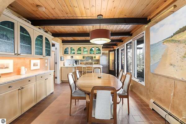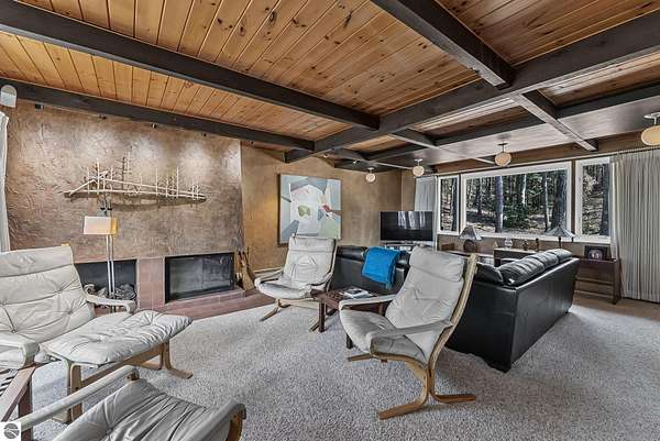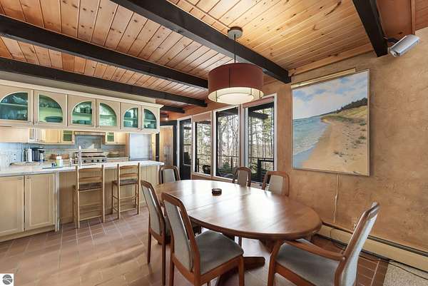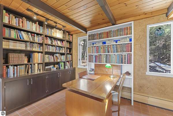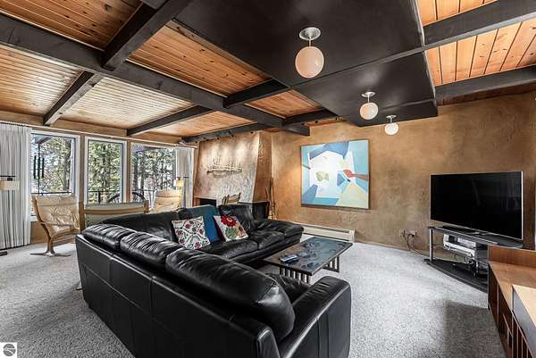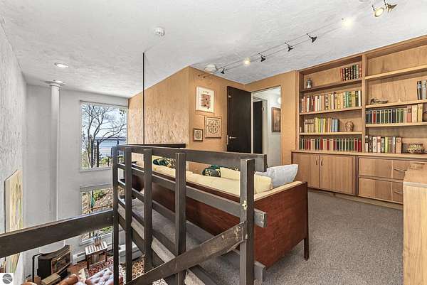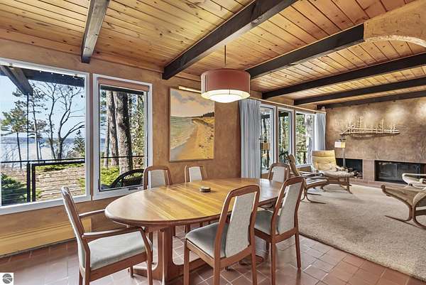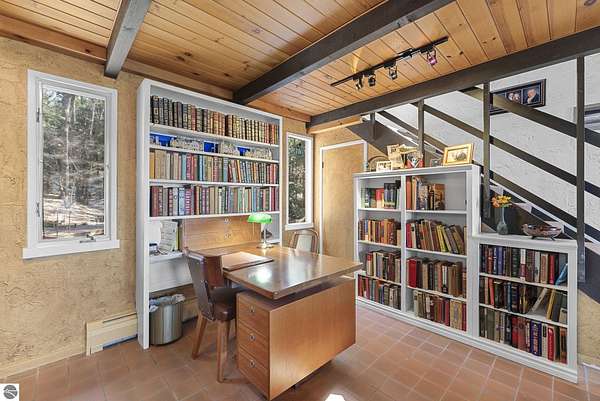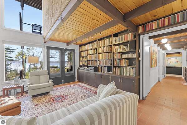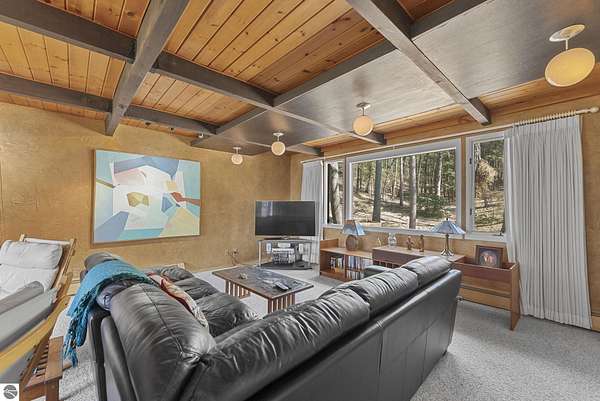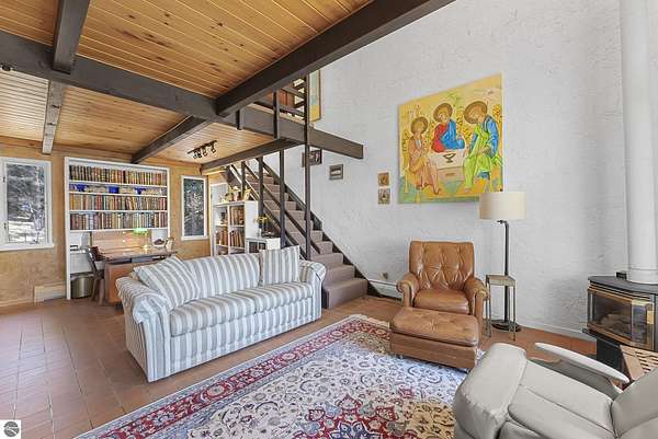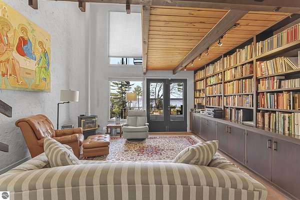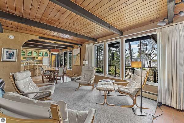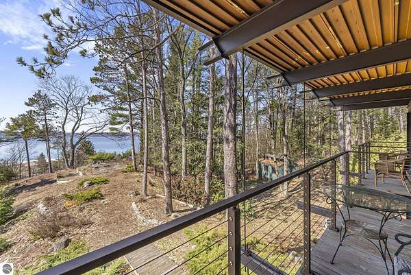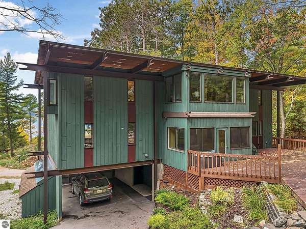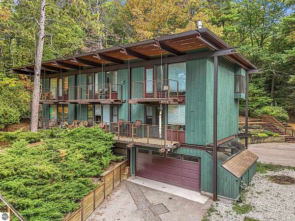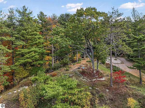Set near the coveted base of Old Mission Peninsula, this exceptional property offers a rare combination of scale, privacy, and proximity—features seldom found in a single offering. The beautiful and unique architecture of this home is like no other on Old Mission. With just over six acres, the estate presents an extraordinary opportunity in one of Traverse City’s most sought-after locations, where acreage of this magnitude is virtually unheard of. The 3,500-square-foot residence is thoughtfully positioned to capture sweeping sunset views over West Bay, with a front-row seat to summer airshows, holiday fireworks, and the ever-changing rhythm of boat traffic along the shoreline. The home offers several separate family areas for entertaining, celebrating family or simply downtime in the cozy and warm interior. Expansive windows and well-proportioned living spaces bring the outdoors in, creating a seamless connection to the surrounding landscape. With three bedrooms and three baths, the home is both substantial and comfortable, offering flexibility for year-round living or a refined seasonal retreat. Just minutes from downtown Traverse City, yet removed enough to feel private and serene, this is a truly rare holding on Old Mission Peninsula—where location, land, and view converge in a way that is increasingly difficult to find. A lower level workshop with tons of storage and a really nice sized garden shed are another bonus with this property. The Views are incredible and the wooded and rolling acreage offers so many opportunities you wont find with other homes.