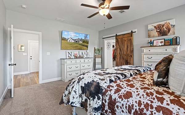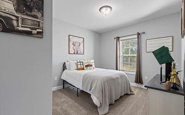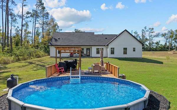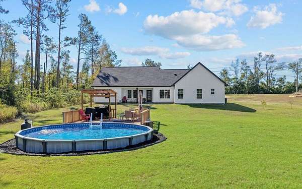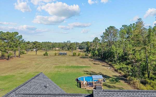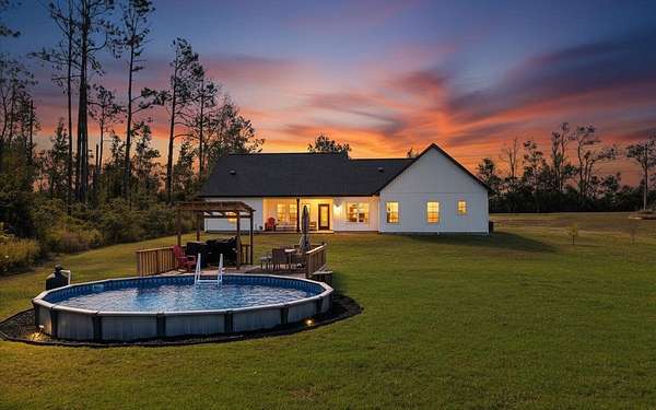 Built with love and attention to detail, this stunning 2023 custom home was designed to be a forever home but life has taken the family in a new direction, giving you the rare opportunity to make it yours. Sitting on 2 acres along a paved road, this 4-bedroom, 2-bath beauty offers 2,152 sq ft of thoughtfully designed living space. Step inside to find a bright, open floor plan featuring a spacious kitchen with quartz countertops, a large island perfect for gathering, black stainless-steel appliances, and a walk-in pantry big enough to be its own room. The master suite feels like a retreat with a huge walk-in closet that connects directly to the laundry room, and both bathrooms include double vanities for comfort and convenience. Each bedroom offers generous storage, with a walk-in closet in the fourth bedroom, spacious closets in the others, and a massive master closet you'll have to see to believe. Step outside to enjoy Florida living at its finest! Relax by the 24-foot round above-ground pool with a custom deck, or unwind on the front and back porches. As a bonus, you have private access to Timberlake, affectionately known by locals as the "100-Acre Lake," perfect for fishing, wildlife watching, and launching your boat from the private ramp. With a two-car garage, beautiful finishes throughout, and every detail done to perfection, this home truly checks all the boxes. Move-in ready, better than new, and built with heart. Come see it today!