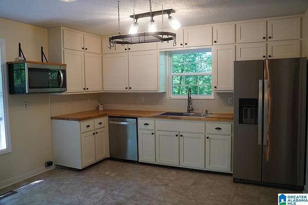 Enjoy a serene place to call home. This home has been remodeled thorughout, with a modern touch and attention to detail. This property is virutually maintenance free with new pex water main 2019, new roof 2022, basement renovated with drywall and beadboard ceiling, kitchen remodel with new cabinets, butcher block countertops, and kraus sink, bathroom remodeled with tile flooring and new fixtures, septic cleaned and main line snaked 2025, new electric water heater 2026, fresh paint throughout. The home is located in a prime radius within ten minutes of UAB West, ten minutes to Hoover, and less than ten minutues to I459