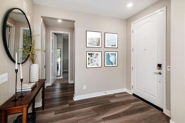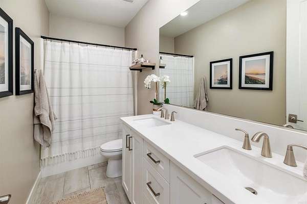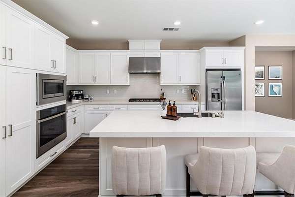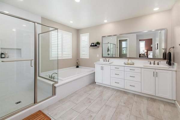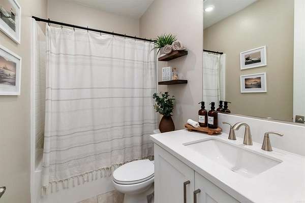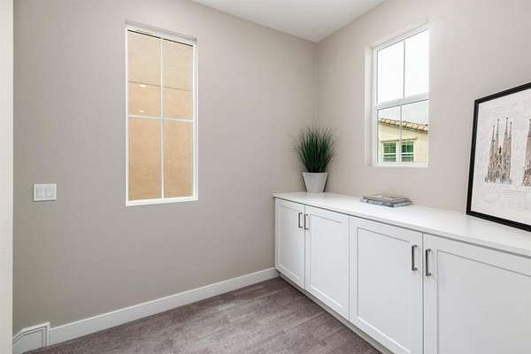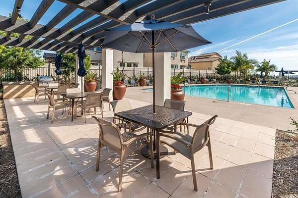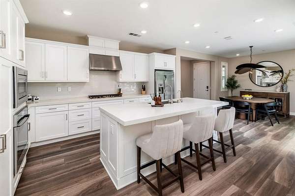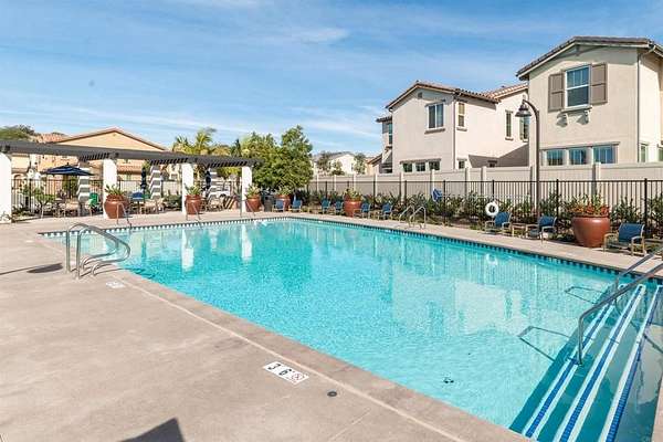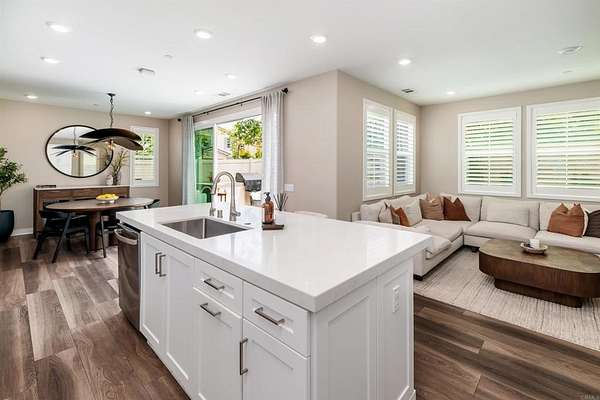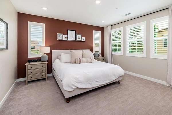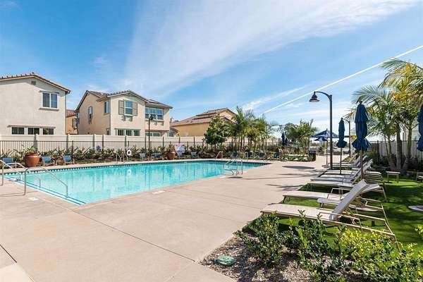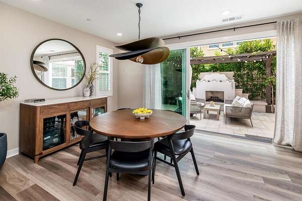 Set on a premier corner lot in Carlsbad's sought-after Treviso enclave, this home blends modern design with owner-selected upgrades and a true indoor-outdoor flow. With a main-level guest suite, spacious interiors, and resort-style community amenities, it's move-in ready----calm and private on an interior street away from the main road.Inside, a south-facing orientation and thoughtful, open-concept main level create a sunlit interior where the kitchen, dining, and living spaces connect naturally. A wall of windows and oversized sliders off the dining area invite light throughout and open wide to a private courtyard with a built-in fireplace--the perfect spot for alfresco dinners or weekend gatherings. The gourmet kitchen is anchored by an island with breakfast-bar seating and finished with white Shaker cabinetry, quartz countertops, a glass-tile backsplash, and stainless appliances. In the living room, a wide expanse of windows keeps the space bright and welcoming all day.Upstairs, the primary suite feels airy and retreat-like, framed by plantation-shuttered windows and a spa-style bath with dual sinks, soaking tub, walk-in shower, and a generous walk-in closet. Two additional bedrooms share a full bath with dual sinks, and an upstairs laundry room adds everyday ease.Built in 2020 and meticulously maintained, the finishes still feel fresh, with upgrades that elevate every space. The open indoor-outdoor plan on the main level makes the home live larger than its square footage--polished, high-end, and easy to love. Energy-efficient features include owned solar and Wi-Fi-certified smart-home touches, such as Schlage keypad entry, a Ring video doorbell, and myQ garage app control.Treviso offers resort-style amenities including a pool and spa, playgrounds, and RV parking by reservation. You're moments to top-rated schools (Poinsettia Elementary, Aviara Oaks Middle, and nearby Aspirations Preschool), plus Park Hyatt Aviara and Omni La Costa resorts, Aviara Golf Club, greenbelts, and hiking trails--with quick I-5 access. Both Carlsbad Village and Encinitas are about a 10-minute drive, putting beaches, dining, and daily conveniences within easy reach.