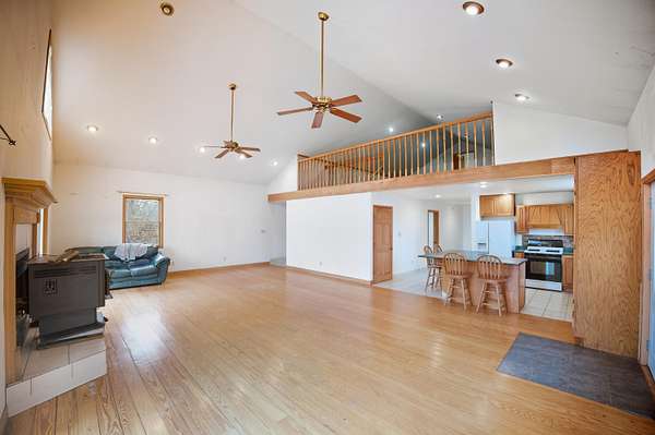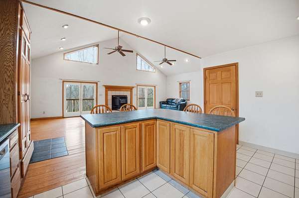 - Ceiling Fan(s), Center Island, Garage Door Opener, LP Tank Owned, Pantry