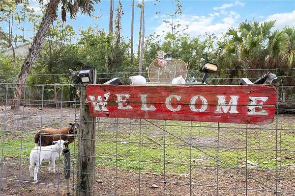 Discover the privacy and space you’ve been searching for with this beautiful pool home situated on just over 3 acres in North Port Estates. This 3-bedroom, 2-bathroom residence offers the perfect blend of comfort, functionality, and peaceful country living while still being conveniently close to everything. Inside, the open floor plan with vaulted ceilings creates a bright and airy atmosphere filled with natural light. Multiple sliding glass doors lead to the expansive screened lanai, where you’ll find a heated pool and spa, along with a fire pit area—perfect for entertaining or simply relaxing while enjoying the peaceful surroundings. The kitchen features a breakfast bar and ample cabinet storage, while the spacious layout allows for comfortable everyday living. Car enthusiasts and hobbyists will appreciate the 6-car drive-through garage, offering plenty of room for vehicles, equipment, and recreational toys. The property also includes a 10x12 shed for additional storage. With agricultural zoning and over 3 acres of land, there is ample space for animals, gardening, or storing boats, campers, tractors, and side-by-sides. Recent updates include roof (2021), water heater (2021), pool resurfacing (2021), countertops (2021), and AC (2023). The washer and dryer are approximately 2 years old. With no HOA and no deed restrictions, you have the freedom to truly enjoy and customize your property. Animals currently on the property include 7 sheep, 1 pot-belly pig, 6 geese, 11 ducks, 12 turkeys, and approximately 60 chickens. Animals are negotiable and not included in the purchase price of the home. Located in a peaceful setting just minutes from I-75 and Tamiami Trail, this property provides convenient access to shopping, dining, golf courses, medical facilities, and Southwest Florida’s beautiful Gulf beaches. North Port is also home to the Atlanta Braves Spring Training stadium, and nearby airports—including Punta Gorda, Sarasota, Fort Myers, and Tampa—make travel easy. This unique property offers space, privacy, and endless possibilities—schedule your private showing today!