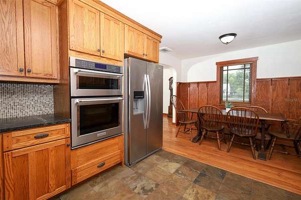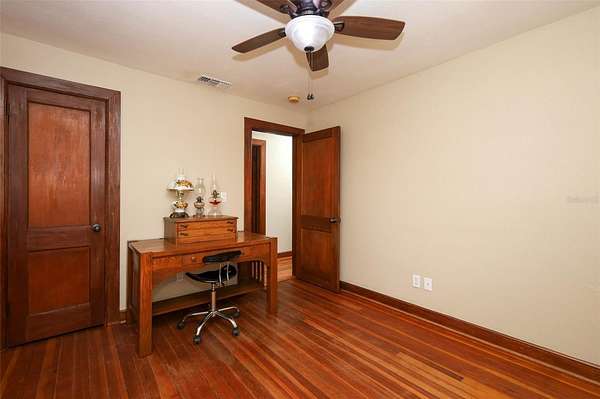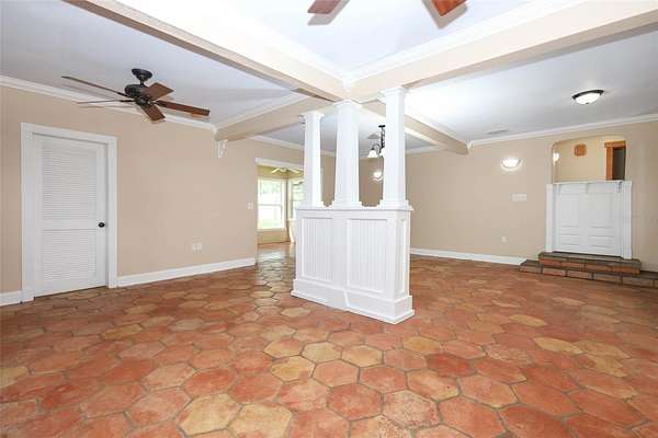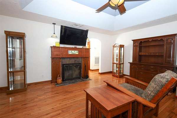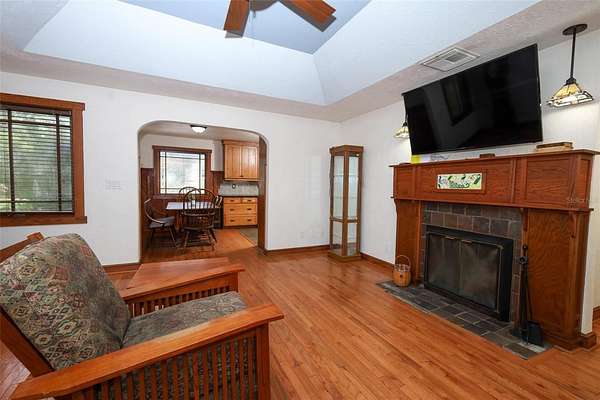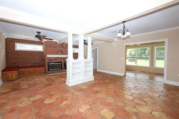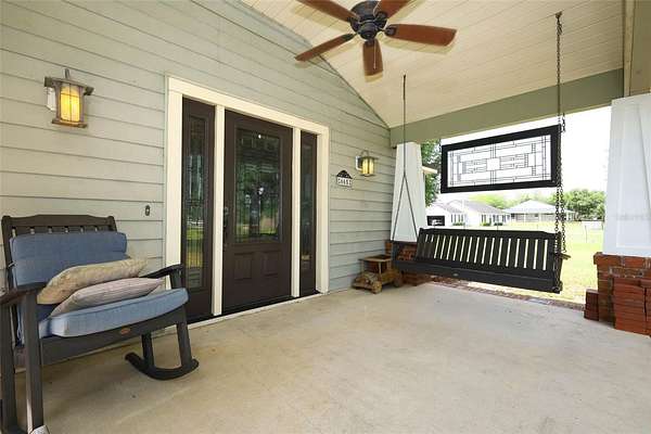 This type of home with land does not come along every day! Do not miss this charming Craftsman-like home with a lovely porch to sit, swing and have your favorite beverage. There are two entrances to this home although the common entry area is off the double covered carport that has ceiling fans for those fun days you want to hang out with the family or need to work on a vehicle. Upon entering, you’ll notice the wide-open space with a wood-burning fireplace that can be used as a large family room, a game room, a personal library, and so much more! Off the left side of the Family Room is a Laundry Room with a work sink and plenty of cabinets and counters for storage and sorting, folding laundry. To the right is a lovely Florida Room perfect to use as a play area, great for the plant lover in your life, or set up as a wonderful reading nook with easy access to the back. There are 2 steps up from the Family Room on the right that takes you to the Primary Bedroom and the Kitchen area. The Primary Bedroom is large and has a lovely view of the back. The transition to the Primary en Suite has a wonderful built out walk in closet. The other bedrooms are wonderful and each has a step-in closet plus there is the second bathroom with hall access and a fun claw-foot tub and large linen closet. The Living Room has beautiful original archways with access to the bedroom hall on the right and eat-in kitchen access to the left and in the center of the Living Room is a beautiful craftsman-like wood-burning fireplace. The land surrounding the home is primarily cleared with easy access to the workshop in the back. This land is fully fenced and a great place to raise animals like chickens, to have a garden, to host memorable get-togethers, and to work on your own special hobby. This home is less than a mile to Lake Mills Park offering a mix of recreational activities like playgrounds, fishing, and camping, with scenic views of a hardwood swamp and the beautiful Lake Mills. This home is in the heart of Chuluota with some of the top Seminole County Schools. You get the best of both worlds with easy access to main road in a country living setting. Don’t wait to take a look at this rare unique property!