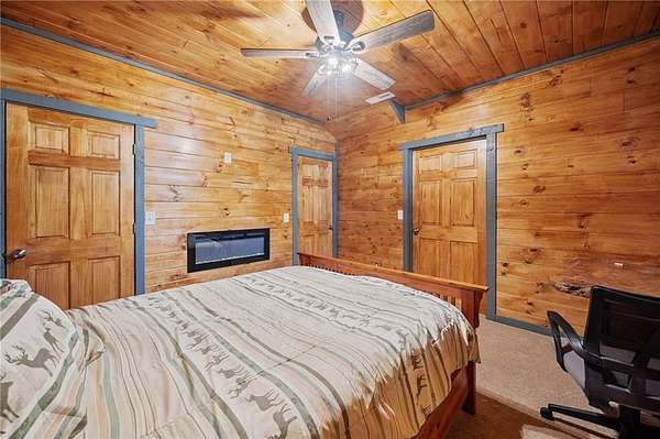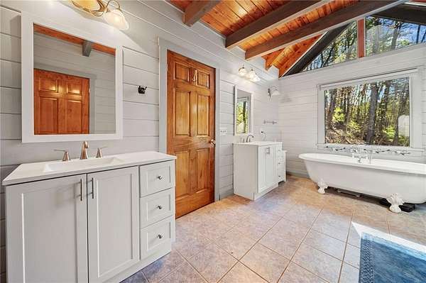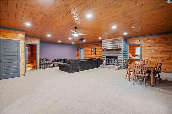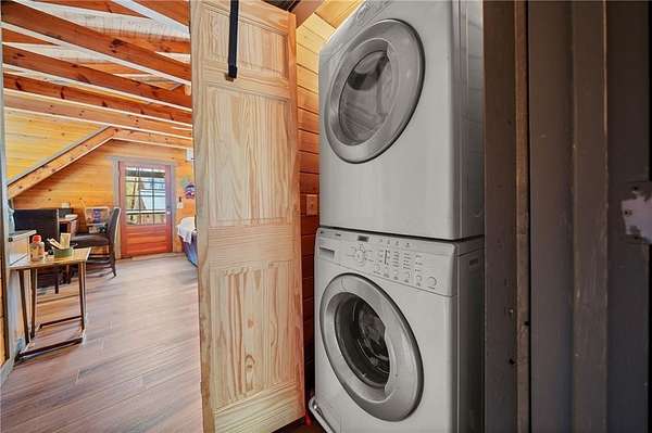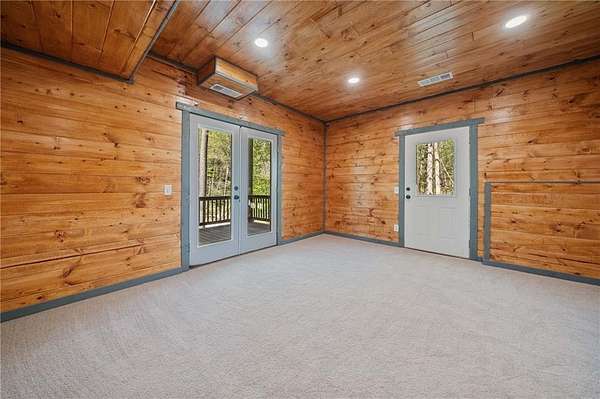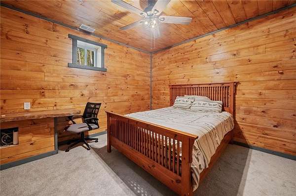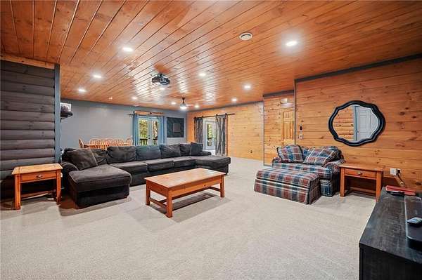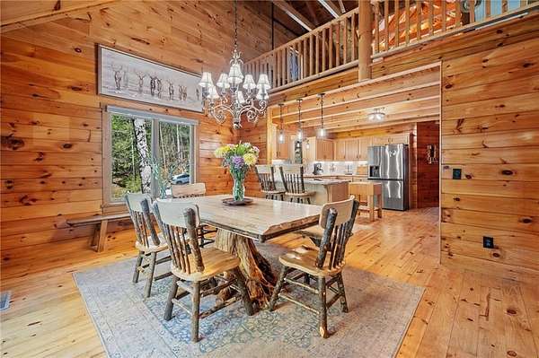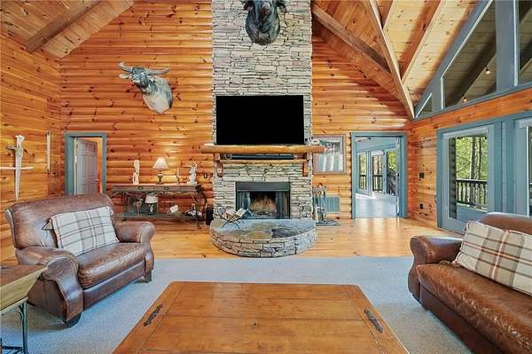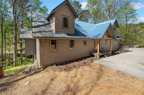 Unrestricted land No HOA on shoal creek BRAND NEW HOT TUB! Discover this stunning wood log cabin that perfectly blends rustic charm with modern convenience. Nestled in a serene setting as you listen to the rushing waters of shoal creek on one of your 2-60' long decks. This home boasts a dramatic cathedral ceiling that fills the open concept living space with natural light. At the heart of the home stands a large, striking rock fireplace, serving as a focal point and adding a cozy ambiance. A loft overlooking the family room provides additional space for relaxation or entertainment. The updated kitchen is a chef's dream, featuring leathered granite countertops, sleek new stainless-steel appliances, and ample storage. Hardwood floors extend throughout the home, adding warmth and elegance to every room. The master bedroom features high ceilings and a private loft, creating a serene retreat within the home. All furniture to remain with the home, ready for residential or investors. Already has the certificate for short term rentals and great rental history. Outside, a newly installed driveway and retaining wall enhance both functionality and curb appeal. The property includes a spacious 3-car garage with a beautifully finished apartment above ideal for guests, a home office, or rental income. The HVAC system, just 3 years old, ensures year-round comfort. This unique property offers the perfect combination of rustic charm and modern amenities. Schedule your showing today to experience this log cabin oasis! Close to Reinhardt college, lake Altoona, Lake Arrowhead, Garland Mountain, downtown Canton, and Callahan Golf course. Current Appraisal of $850,000 available.