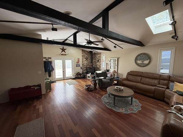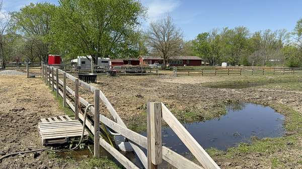 Escape to your own private countryside retreat--without sacrificing convenience. This exceptional 8.19-acre equestrian property offers the perfect blend of peaceful rural living and easy access to nearby amenities. Designed with horse enthusiasts in mind, the property features a well-equipped 6-stall barn with hayloft, fenced pastures, a lean-to, and even an aerated pond. For outdoor recreation, you'll also find an elevated shooting house and plenty of open space to enjoy. The nicely updated ranch home offers nearly 2,300 square feet of comfortable living space. A standout feature is the expansive rec room with vaulted ceilings, skylights, and a cozy woodburning stove--ideal for hosting gatherings or relaxing on winter evenings. Just off this space is a convenient home office with sliding doors leading to both the rec room and the rear deck. The kitchen has been thoughtfully updated with white cabinetry, granite countertops, and stainless steel appliances, and flows seamlessly into the living and dining areas. Hardwood floors throughout the main living spaces enhance both style and ease of maintenance. The spacious primary suite includes dual closets and a private ensuite bath complete with a whirlpool tub/shower and updated fixtures. Two additional generously sized bedrooms and a second full bath round out the home. Outdoor living is just as impressive, with large front and rear decks perfect for entertaining. The rear deck connects directly to the above-ground pool, creating an ideal setup for summer enjoyment. Set back from the road, the home offers added privacy and tranquility. All of this, plus low Portage Township taxes and convenient access to expressways, shopping, and dining--making this property a rare and desirable find for both equestrian enthusiasts and anyone seeking space to spread out.
