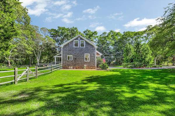 Tucked away on over 3.5 acres along historic Route 6A, just a mile from scenic Sandy Neck Beach, this renovated antique offers a rare blend of timeless charm & modern comforts. A covered porch with a custom-crafted door featuring a carved lighthouse welcomes you into a home filled with warmth & character. High ceilings, oversized windows, and wood floors, create an inviting backdrop throughout. The main level boasts a cozy living room with built-ins & a fireplace, a bright dining room opening to the kitchen, a family room or bdrm, 2 baths, laundry, mudroom, and a enclosed porch. Upstairs, find 4 bdrms, a full bath. Outside, professionally landscaped irrigated grounds include a circular drive, flat cleared yard with room for a pool, and a fenced rear yard surrounded by mature trees for privacy. Whether gathering on the screened porch or relaxing on the patio, this home is a private oasis-yet just minutes from Route 6A shopping, dining, beaches, marshes, and Cape Cod's finest attractions. With a 6-bdrm septic, excellent rental history, and potential to expand or build an ADU, this one-of-a-kind property presents an extraordinary opportunity to own a true Northside retreat.