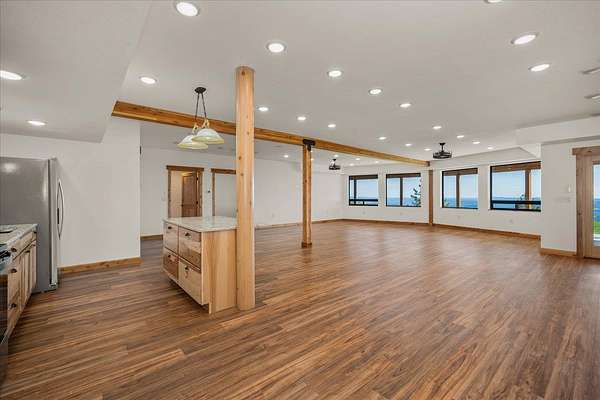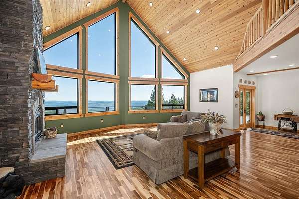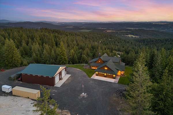 Welcome to your Mountaintop Chalet located in Deer Park! This custom build 7,000 sq ft home sits atop the Saddle Mountain gated community. Views of Long Lake, the West Plains, and Spokane cityscape! HOA maintains the road with snowplowing and grading. Feel on top of the world as you venture up the driveway. This craftsman style home boasts a grand vaulted entrance and is highlighted even further in the grand living room with floor to ceiling windows carrying all the way up the vault. The home is fully custom built with Acacia wood floors, cedar logs as support posts, log staircase, granite countertops, heated floors in bathrooms, gourmet kitchen, living room, and den! Upstairs has 2 bedrooms, 1 bathroom, a loft and reading nook. The basement could be its own unit with outside entrance, full kitchen, additional primary bedroom w/ laundry hookups and 2 additional bedrooms. The property also boasts a 48x60 shop with lean to! Enjoy the fresh landscaping with basalt boulders and lawn!