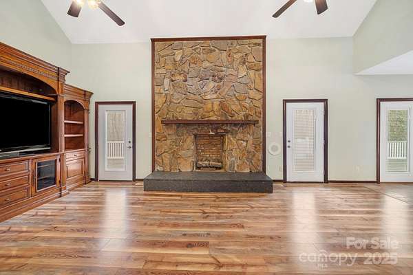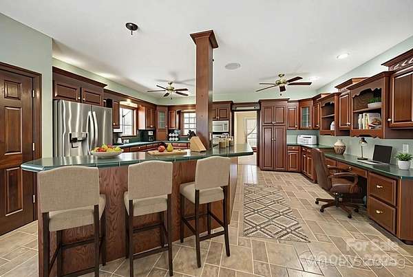 Welcome to this expansive home offering room to spread out-both inside and out. Enjoy relaxing mornings on the spacious covered rocking-chair front porch or entertaining on the large rear deck overlooking your private acreage. Inside, the home features a generous living room with a cozy fireplace, a formal dining room perfect for gatherings, and a dedicated office on the main level-ideal for working from home. The primary bedroom is conveniently located on the main floor, providing comfort and privacy. Upstairs, you'll find three additional bedrooms along with a versatile loft area, perfect for a media space, playroom, or second living area. The basement offers tons of storage and adds incredible flexibility with a second kitchen and full bathroom-ideal for guests, multi-generational living, or entertaining. A standout feature is the detached garage boasting over 2,100 square feet, offering endless possibilities for vehicles, a workshop, or recreational equipment.