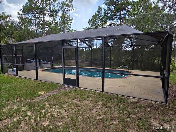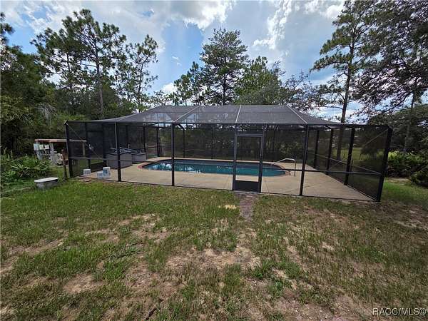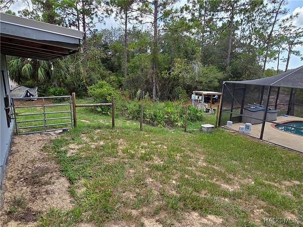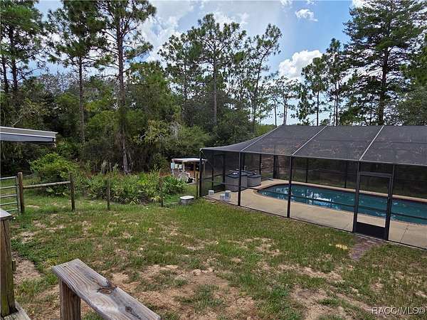 Come enjoy gorgeous sunsets from your very own country retreat! This mini farm home sits on 2.62 acres and has an awesome caged inground pool!!! Large back deck overlooks pool and a backdrop of a sprawling field where you can watch horses roam. Home has a split floorplan with bedrooms on opposite ends of the home and a large open great room and kitchen in the middle. Beautiful newer kitchen cabinets and a breakfast bar with a lovely butcher block top and stainless-steel appliances. Luxury vinyl plank floors throughout home. Recent updates include metal roof and AC in 2020 and a new pool pump in 2025. Fenced in yard for your pets to safely roam. Bring your chickens, goats, donkeys, horses, cows...whatever your heart desires, there are no restrictions here!! Home is on a dirt road but is not far from pavement and there is a road maintenance poa in place to make sure the roads are always in good condition. Country living at its best!!!