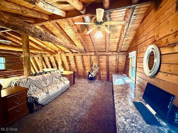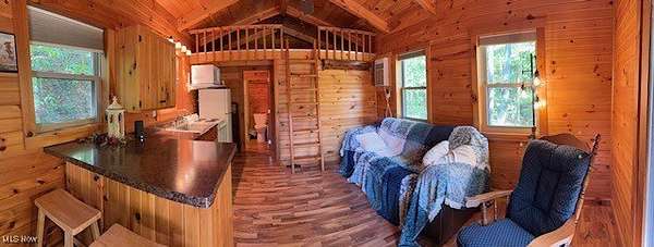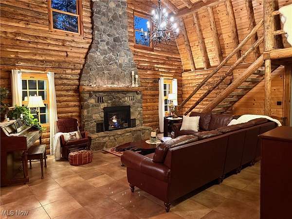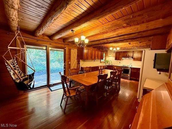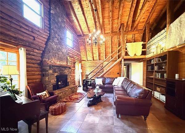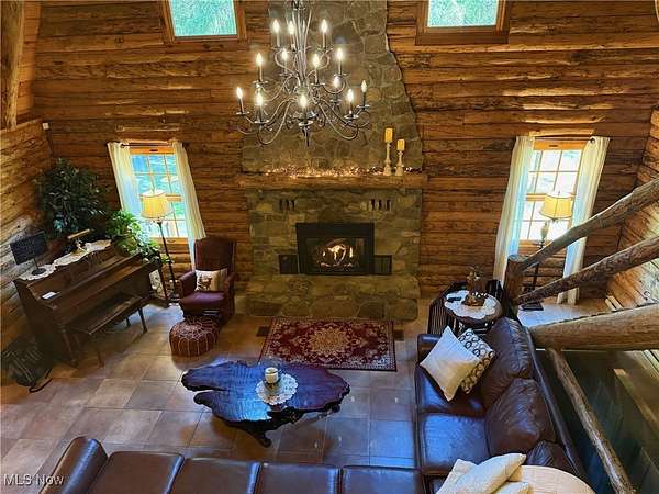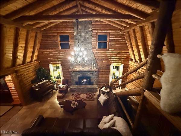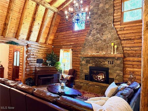 Well maintained 4 bedroom, 3 bath, log home surrounded by woods and nature. You will feel like you are vacationing in the Smokies. The expansive great room with a towering fireplace chimney built with stones from the site, as flames flicker in the Mendota propane fireplace reflecting off the logs and beams of the cathedral ceiling, this is where you will want to celebrate the holidays and cozy winter evenings in your forever home. The spacious kitchen with cherry cupboards and wood floor crafted from the trees of the property sports a 14 seat extension table to host your turkey dinner. A stone patio off French doors leads to a gardened pathway to an adorable guest cottage for your overnight guests. The loft overlooking the great room fireplace - with custom counters and desk is ideal for crafting, studying or a fifth bedroom. The office with custom built shelving, counters and desk leads to the first master suite with newer wood flooring and private bath. At the opposite end of the main floor the second master suite with its adjacent bath, enjoys sunny south exposure, newer wood floor and walk in closet. The lower floor offers the perfect retreat for your teens or guests with two bedrooms, a bath, a rec room with a Harmon pellet stove, laundry with Speed Queen washer and dryer and the two car garage, as well as storage spaces. You will enjoy water from the new 380' well, new Insulated Wayne garage doors, Malta replacement windows, newer flooring on most of the first level and bedrooms, central vac, reverse osmosis water purification, gutter guard, updated bathroom fixtures, and underground pet containment fence in the yard. With the pond stocked with fish, the boat, stream for catching frogs, hills for sledding, fire rings, small barn for garden equipment and ATV's, a shed, trails in the wooded acreage - you have discovered a rare idyllic paradise for raising a family, hosting guests or relaxing in this once in a lifetime dream opportunity in the outskirts of Dover.
