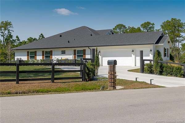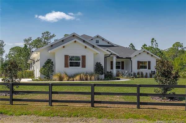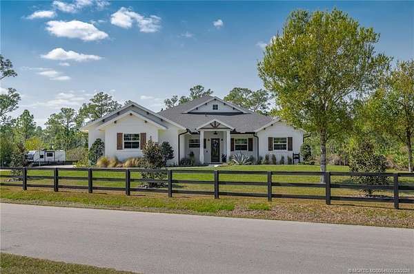 RARE 2023 CUSTOM ESTATE ON 4.3 ACRES IN PALM CITY FARMS - NO HOA! This stunning custom-built CBS estate in Palm City Farms offers 4-beds + dedicated office and 3-full baths with high-end finishes and thoughtful design throughout. Light-filled open layout, custom buildouts, mudroom, & a gorgeous chef's kitchen w/ premium appliances, and walk-in pantry. The spacious primary suite offers a private retreat w/ spa-inspired bath, while the additional rooms & office provide flexibility for guests, remote work, or multigenerational living. Enjoy a saltwater pool overlooking preserve views, expansive covered patio, and a fully equipped summer kitchen. The 3-car garage & dedicated RV/boat pad provide ample space for all your vehicles & toys. With 4.3 acres of land, there is plenty of room to add a pole barn, guest house, workshop, or additional outbuildings. A truly amazing opportunity to own newer construction on acreage in Palm City.