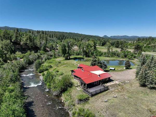 Justin D Osborn, The Wells Group of Durango, LLC, O: 970-946-3935, justin@wellsgroupdurango.com, http://southwestcoloradoranchbrokers.com/: This executive fishing lodge on 36 acres consists of approximately 1/4 a mile of the trout filled Navajo River, a 7500 sq ft custom 4 bedroom lodge, and a 2715 sq ft one level 4 bedroom ranch home. No Covenants, No HOA and No Conservation Easement. Located in the unincorporated part of Archuleta County and previously an Orvis endorsed fly fishing lodge, this property has huge short-term vacation rental potential. Located at 7050' elevation with good year round access on a well maintained county road. The San Juan National Forest is less than 2 miles up the road. Wildlife are frequently seen on the ranch including elk, deer and turkey. Adjoining 71 acres with another 1/4 mile of Navajo River frontage could be added onto this offering.