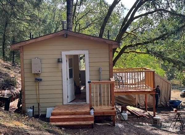 Discover the ultimate blend of privacy, preparedness, and natural beauty with this unique 80-acre woodland retreat. Featuring a brand-new, thoughtfully designed tiny home, this property offers a move-in-ready, high-efficiency lifestyle tucked away in a quiet, serene location, while still being conveniently close to local town amenities. The stunning, newly constructed, energy efficient tiny home is engineered for longevity and safety, featuring full fire-resistance upgrades including durable Hardyboard siding and tempered double-pane windows. The cozy interior opens up to a spacious porch and deck, perfect for taking in the serene surroundings. The property is well-equipped with several outbuildings, gas appliances, a healthy well with additional water tank for backup storage, ample storage and space for workshop projects and an upper meadow with fenced garden area. This 80-acre parcel is a nature lover's dream, featuring a rich, diverse ecosystem. The land includes a wealth of harvestable timber, featuring mature oak, madrone, bay, and tan oak. A beautiful, year-round creek runs through the property, enhancing the serene atmosphere and supporting a diverse habitat. With a strong focus on self-sufficiency, the property boasts a diverse ecosystem of medicinal plants, including Yarrow, Hawthorne, Juniper, and Mugwort, offering a unique opportunity for foraging or cultivation. Whether you are looking for a homestead, a sustainable investment, or a private recreational getaway, this property offers it all.
