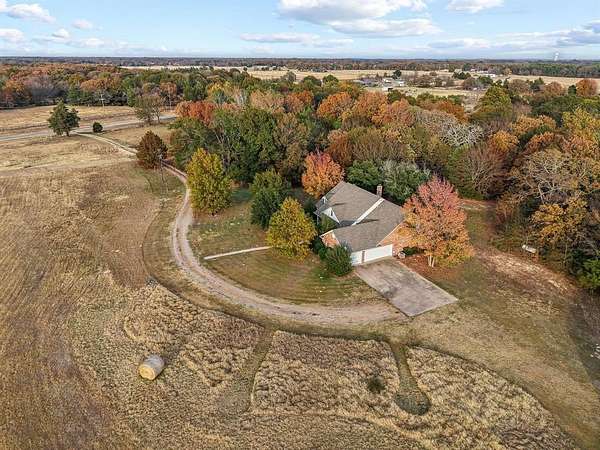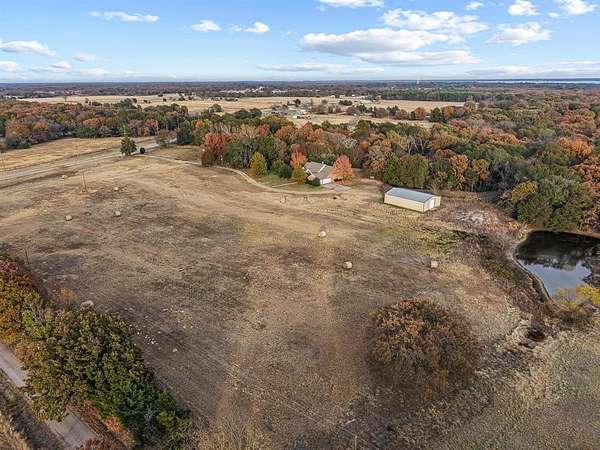 Looking for country living with all the space? Then take a look at this 4 bedroom, 3.5 bath, 3 car garage home nestled on 46 +-acres with a 40x60 workshop. Property is within minutes to two boat ramps to the Bois D' Arc Lake, has road frontage on 3 sides, is close to horse back riding trails and to government hunting land. The home has a covered front porch, a gas log fireplace, 2 living areas, 2 dining areas, a jack & Jill bath, a large primary bedroom, crown molding, tall ceilings, and a back patio with views of mature oak trees and a creek. Upstairs is the 4th ensuite bedroom and offers great space for guest or could be used as a home office. The 40X60 drive through-able, metal workshop has a concrete floor, electricity, 2 roll up doors, and has ample space for tractors, boats, hot rods or a large workshop.. The pasture is mostly open land that would be great for hay production, a garden area or for outdoor farm animals. To top it all off there is thick native timber around the creek area where deer have been spotted.