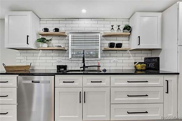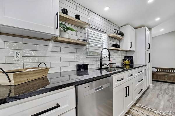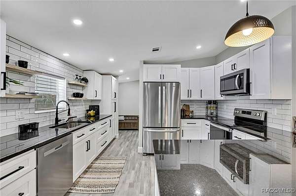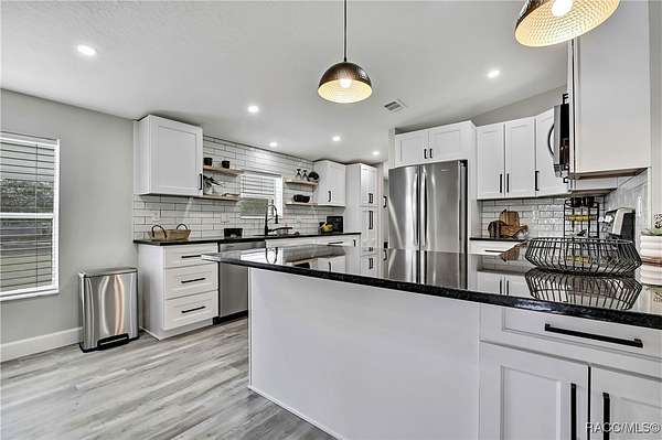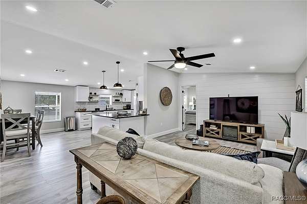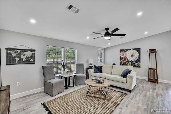 Renovated & Ready on 1.89 Acres-Gated, Cleared, and Full of Upgrades Looking for land, privacy, and modern finishes without the wait? This updated 3-bedroom, 2-bath home in Whispering Woods checks all the boxes. Sitting on nearly 2 fully cleared, fenced acres with two gated entrances, a circular driveway, and over 80 mature oaks, this property is built for flexibility-bring your RV, boat, or work vehicles with ease. Nearly 4,000 sq. ft. of poured concrete means you'll have all the space you need for parking, play, or projects. The home itself has been completely overhauled-inside you'll find a brand-new kitchen with granite countertops, soft-close Shaker cabinetry, stainless steel appliances, and all new fixtures. Both bathrooms are fully remodeled, and luxury vinyl plank floors run throughout the entire home. Every detail is fresh: baseboards, doors, trim, fans, recessed LED lighting, and shiplap features.Everything is literally new. Additional perks include: Enclosed front porch for year-round use & covered back porch New water heater, washer & dryer Oversized storage shed Furniture is negotiable Located just off Homosassa Trail with quick access to US-19, the Suncoast Parkway, and minutes to local marinas-this property offers the best of quiet living with convenience around the corner. Nothing to do but move in and make it your own.