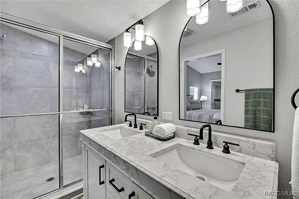 - Dual Sinks, Open Floorplan, Primary Suite, Separate Shower, Shower Only, Stone Counters, Walk In Closets, Window Treatments