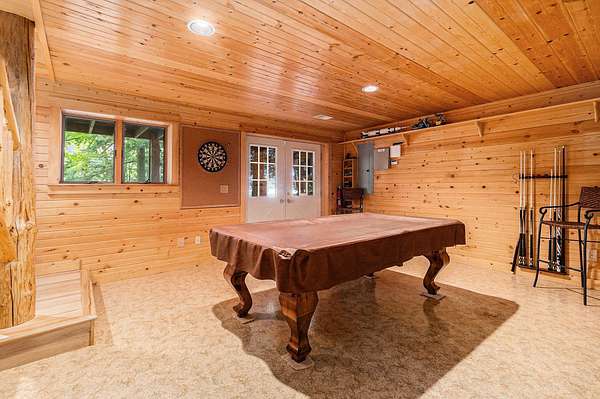 This stunning fully furnished full log home offers the perfect balance of rustic charm and modern comfort, set on almost 2 acres with 147 feet of natural Hamlin Lake frontage. Two docks and a boat lift make it easy to enjoy endless days on the water, while the covered front porch invites you to relax, watch wildlife, and take in breathtaking sunsets. Inside, the open floor plan features a spacious kitchen, dining area, and living room with soaring cathedral ceilings. The main floor includes a primary suite with full bath and convenient laundry. Upstairs, the loft provides a cozy sitting area or extra sleeping space, along with a bedroom and full bath featuring a jetted tub.The finished walkout lower level adds even more living space with a family room, bonus sleeping area, full bath, and workshop. Complete with direct access to the patio and waterfront. Snap this charming home up and enjoy it all summer long!