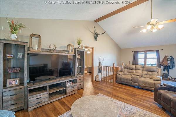 Country roads take you home to this ranch-style retreat with a warm, cabin-like feel, set on 14.33 acres with sweeping views of rolling fields and surrounding mountains. The main level features an open-concept layout and a private primary ensuite with a walk-in closet. A fully finished oversized basement offers flexible space for additional rooms, recreation, or storage. Thoughtful upgrades include a whole-house generator, new septic tank and aeration system, new hot water tank, updated flooring, and new gutters and downspouts to be installed soon. A peaceful setting with room to spread out and make it your own.