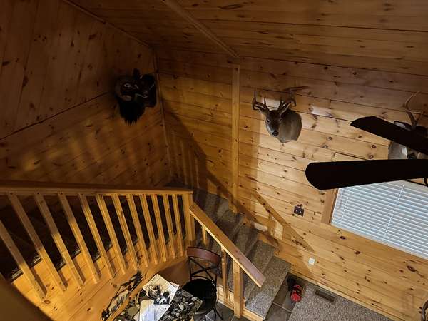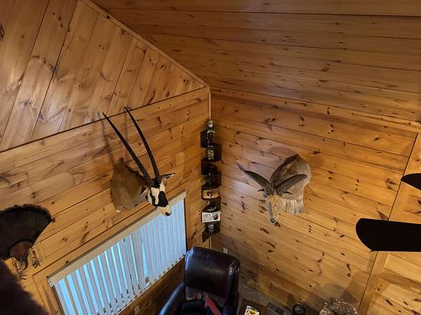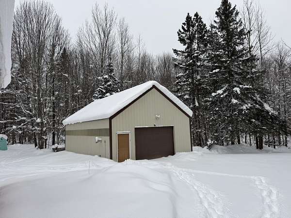 ATTENTION SPORTSMEN! 25 Acres of hardwoods south of M-28 on CR 415 ready for Snowmobile season! All metal sided & roofs, 2 bedroom 1 bath chalet & heated 24 x 32 pole barn! Large entry/laundry, new appliances, 200 amp service underground to a new back up generator! Unique great room with cat walk to a raised porch, all open for entertaining in knotty pine with Forced air propane heating & cozy pellet stove. Kitchen has new appliances, granite counters & kitchen movable island. Bedroom with a huge walk in closet, fits bunk beds if you choose, & a beautiful tiled bath with soaker tub & walk in shower. A open staircase to large bedroom with built in storage. 2 New Orion deer blinds, trails, food plots & more! ALL NEWER GARAGE ITEMS, FURNISHINGS & MORE CAN BE NEGOTIABLE ON SEPARATE SALE!