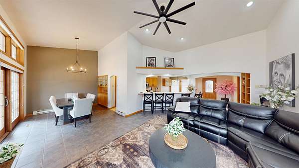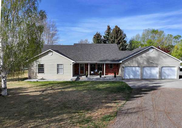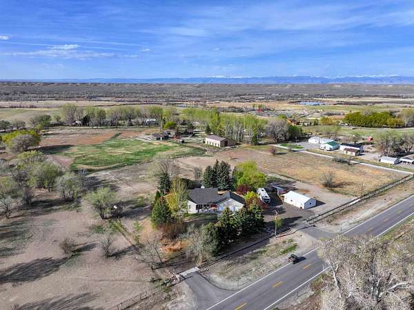Welcome to 6659 Riverview Road, a prime estate in one of Riverton's most desirable rural locations, with beautiful mountain views, paved road access, irrigated acreage, mature trees, and conveniently located a 10-minute drive to town. This rare rural property features approximately 4 acres of irrigated pasture, landscaped with a lush lawn and beautiful trees and shrubs that offer natural privacy. The elegant, custom-built ranch style home boasts 3,736 sq. ft. of exceptional living space, 4 bedrooms, 3 bathrooms, 3 large family rooms and additional rooms that could be more bedrooms, but currently serve as an excellent office, den, homeschool room and/or hobby area. Custom-built and thoughtfully designed, the home features vaulted and cathedral ceilings with southwest-facing windows along the entire back of the home, filling the living space with incredible natural light. The gas fireplace with a stone hearth and warm-tone finishes makes the home feel inviting from the entrance. The quality kitchen is open to the main living space making it a centerpiece to gather. It is thoughtfully built with ample cabinetry, pantry storage, a breakfast nook, generous counter space, double ovens, and an eating bar that comfortably seats 6. It opens to the formal dining room with access to the covered backyard patio. Detailed property features include forced-air gas heat with central air conditioning, electric baseboard heat as a backup, a brand-new roof, wood casement windows, metal siding tastefully accented with exterior brick, an automatic sprinkler system in the yard, RV parking, concrete patios and walkways, and a compact roadbase finished circle driveway. The bright and spacious primary suite includes a jetted spa tub, a separate tiled shower, walk-in closet and impressive windows facing the mountain views. The home offers main-level living. The spacious, finished basement adds all the additional living space you could ever need for a recreation room, home gym, playroom, or guest quarters, providing excellent opportunity to utilize the home in several ways through various chapters of life. The finished 32'x24' attached garage is spacious enough to fit 3 cars, including large vehicles. One of the property's most noteworthy features is the opportunity to live the Wyoming lifestyle with animals, including perimeter fencing, irrigation, a private well, a three-sided barn, and a 32'x24' detached equipment shop. The extensive patio capitalizes on the location's serenity and beauty. This home was built to last, offering a perfect balance of elegance and comfort. It's been lovingly maintained and positioned to enjoy Wyoming's best landscape and views. CALL GEORGE AT 307-851-9627 TO SEE THIS PROPERTY