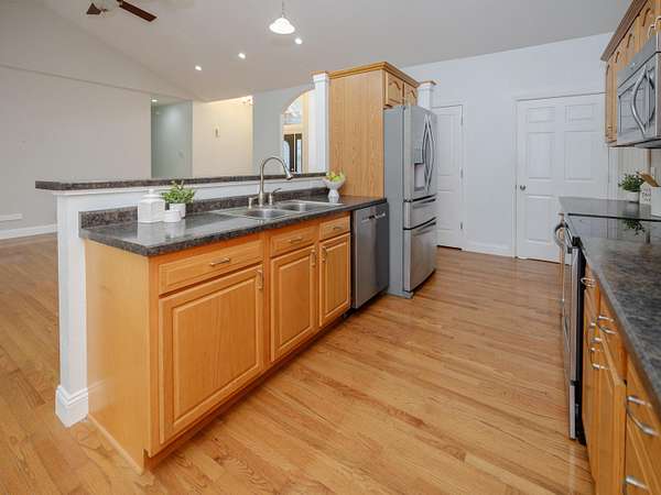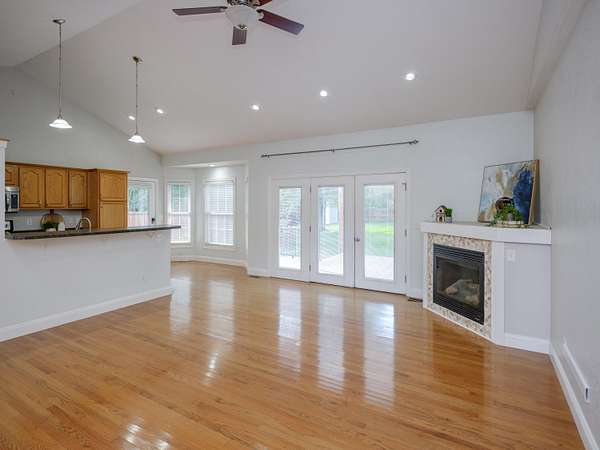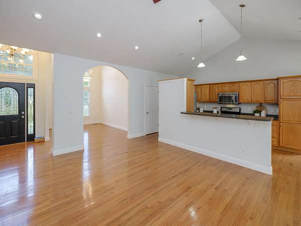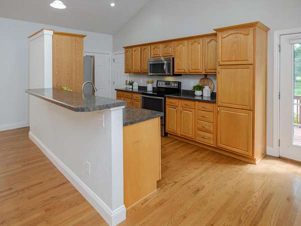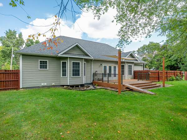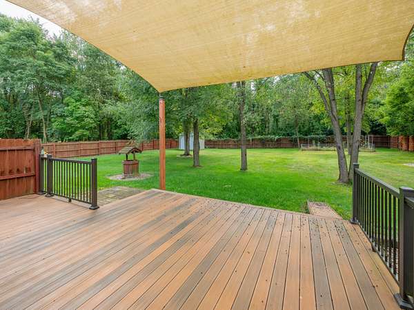 An amazing home on 2.9 acres or(option of 1.12 acres at a lower price)with a grand entrance of soaring 14-16ft ceilings.Great room floor plan features wood floors & flows beautifully between the living room with gas/corner fireplace,formal dining room and spacious kitchen with Whirlpool appliances.The primary suite boasts cathedral ceilings,remodeled bath with heated floors, dual vanity & tile shower with stone floor.There are 2 additional main floor bedrooms and the 2nd remodeled full bath with a deep tub and heated floors. In the LL, you will find a family room/game room with lego desk,workout room,office and 4th bedroom with egress window and adjacent 1/2 bath. Lots of storage throughout the home.Fenced private backyard with wooded surroundings.Large Trex deck and firepit area,great for relaxing or entertaining.The additional land behind the fence is a peaceful sanctuary, follow the trails and enjoy the wildflowers and the man made pond
