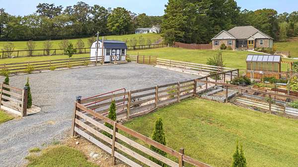 The property is fully set up for a functioning farm with fencing, cross fencing, a 40x60 barn (with garage door, canning kitchen, 20 amp for tools and separate utility meter), a 20x30 shed and functioning silo There's also a 30-amp RV hookup, 16-camera security system, greenhouse, 40x40 raised beds, 40x40 in-ground garden, and fruit plantings including figs, blackberries, blueberries, mulberries