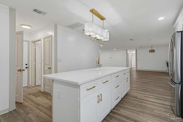 This is the country home you have been looking for! Built to last, this remodeled cinderblock with stucco 3 bed/ 2.5 bathroom home is recessed nicely off the road offering 2+ wide acres, cinderblock detached 2-car garage/workshop with power, and a 720 sqft studio (Home Office, Gym, Hobby Space) with an attached 2-car carport with easy water tap into the well system available. Walk inside to a bright open space with lots of natural lighting that wraps into the formal dinning room. You will love the chefs kitchen with coffee bar, all new white shaker soft-close cabinetry, cedar accents, and gold stripped quartz countertops. Private floorplan! The primary bedroom has an attached full bathroom with tiled walk-in shower. The two guest bedrooms are nicely sized with custom closet build-outs with a shared full bathroom. You will love the tranquility this location offers! Enjoy your backyard in the oversized finished Florida room, this could easily be converted into a fourth bedroom. 2025 Roof, HVAC, & Water heater. New windows. Do not miss this chance, schedule your private tour today!