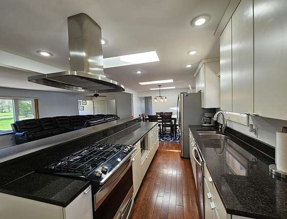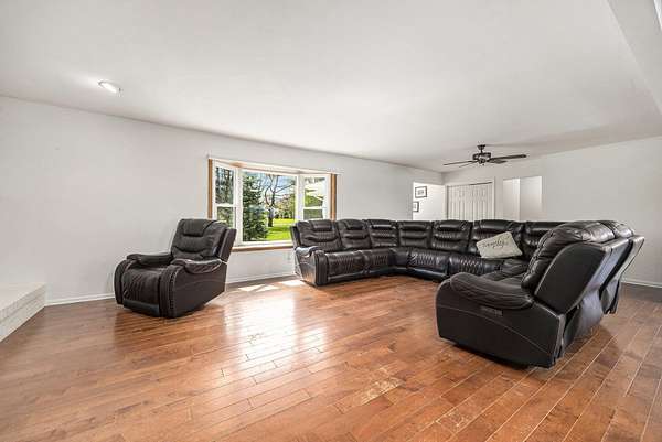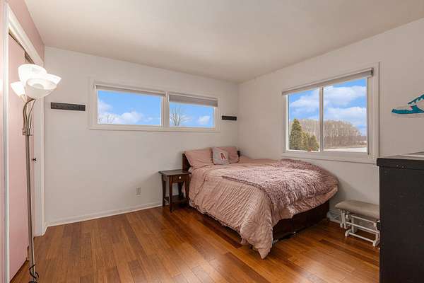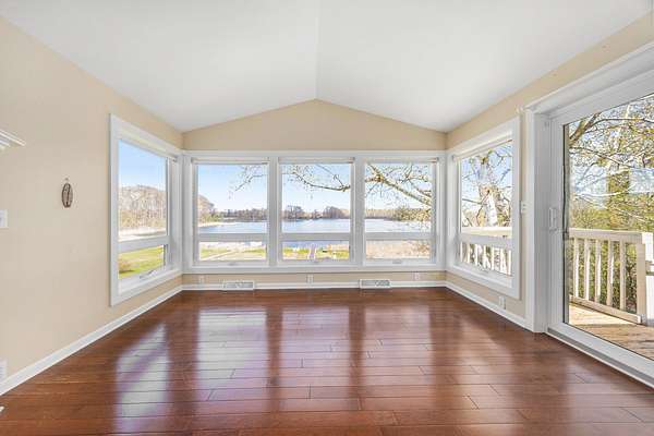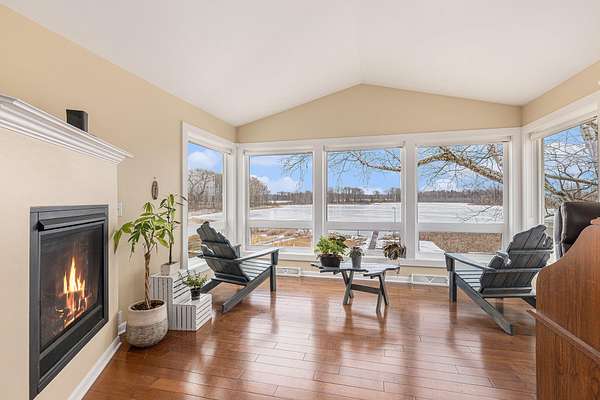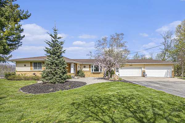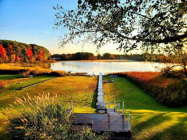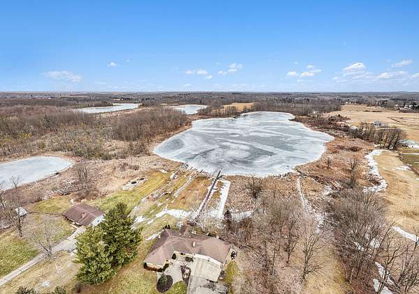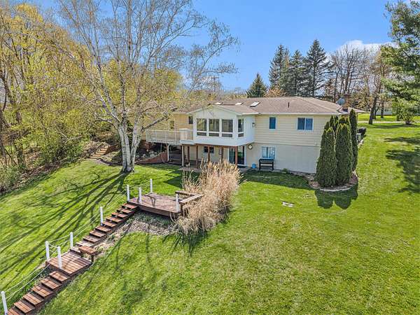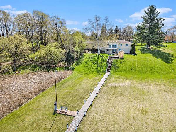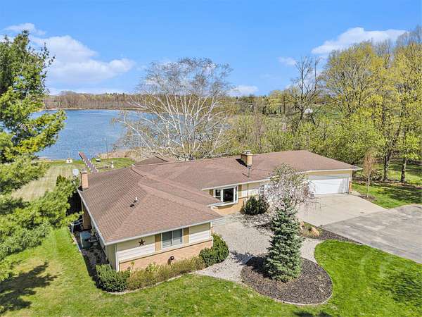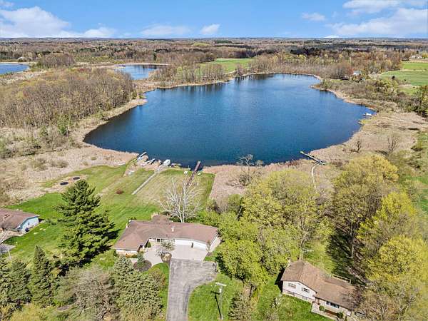 Experience the perfect blend of luxury and waterfront living in this stunning custom-built home. With just over 3,200 finished sq. ft., this ranch-style retreat sits on 2 acres with 200 feet of private frontage on Ware Lake, offering breathtaking views and year-round recreation. The open kitchen features quartz countertops, stainless steel appliances, and ample cabinetry, flowing into a fireplace-lit living room, dining area, and four-season room. The primary suite includes a gorgeous private bathroom with a huge walk-in tile shower and dual vanities with granite tops. The lower level walkout boasts a family room, second kitchen, full bath, three additional non-conforming bedrooms, and patio access. A four-stall garage, viewing deck, and boardwalk complete this exceptional home.