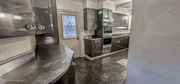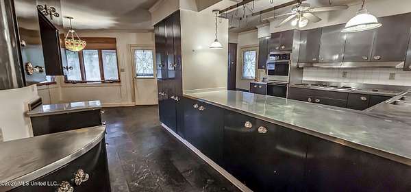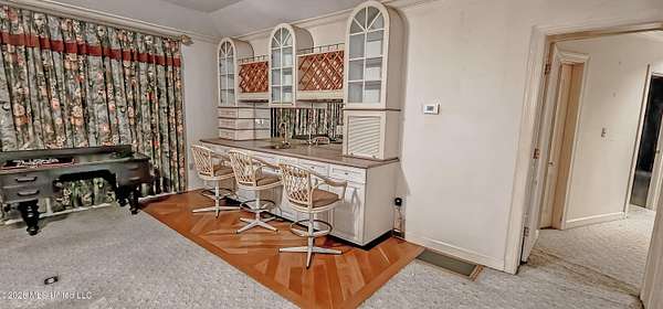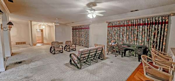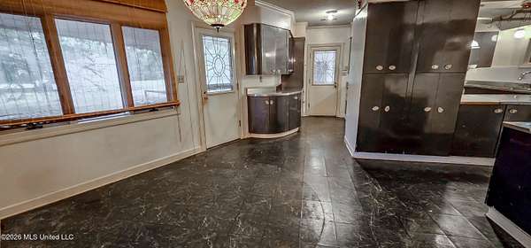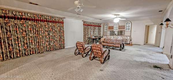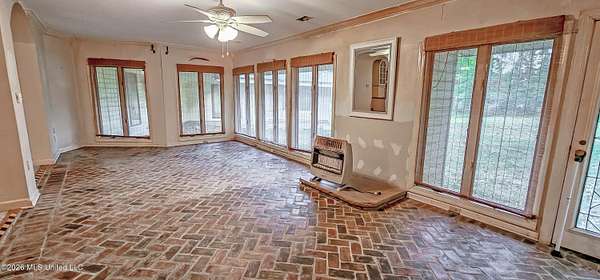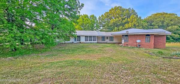 Tucked away on 15.5 beautiful rolling acres, this one-level home offers exceptional privacy and endless potential. Set well off the road, the property provides a peaceful, secluded setting perfect for those seeking space and tranquility. Inside, the home features a spacious layout with an enormous living area complete with a wet bar-ideal for entertaining. A beautiful sunroom adds the perfect spot to relax and take in the surrounding views. The large eat-in kitchen offers plenty of room for gatherings, complemented by a separate formal dining room. A private office provides a quiet workspace for remote living or business needs. Each bedroom includes its own en-suite bath, offering comfort and convenience for family or guests. The home also showcases charming details such as casement windows and stunning leaded glass entry doors, along with abundant storage throughout. An attached efficiency apartment adds flexibility for extended family, rental income, or a guest suite. Outside, you'll find a large shop already wired with electricity, perfect for hobbies, storage, or a home-based business. This property offers incredible potential and is ready for your personal touch to transform it into a stunning private estate. Opportunities like this, with acreage, privacy, and versatile features, don't come along often.
